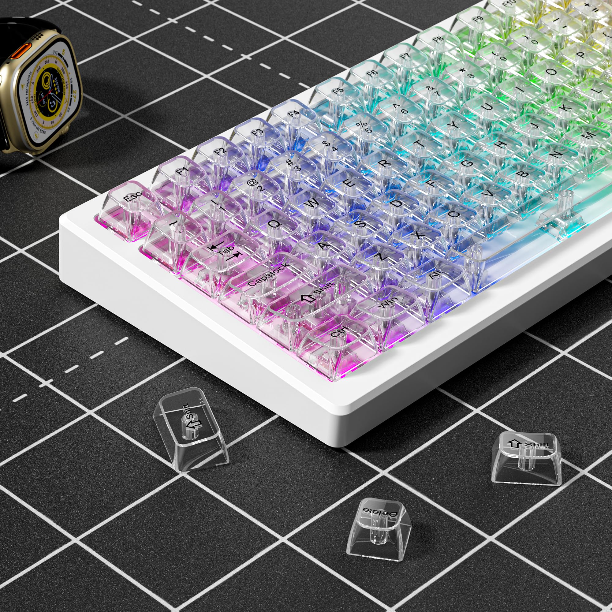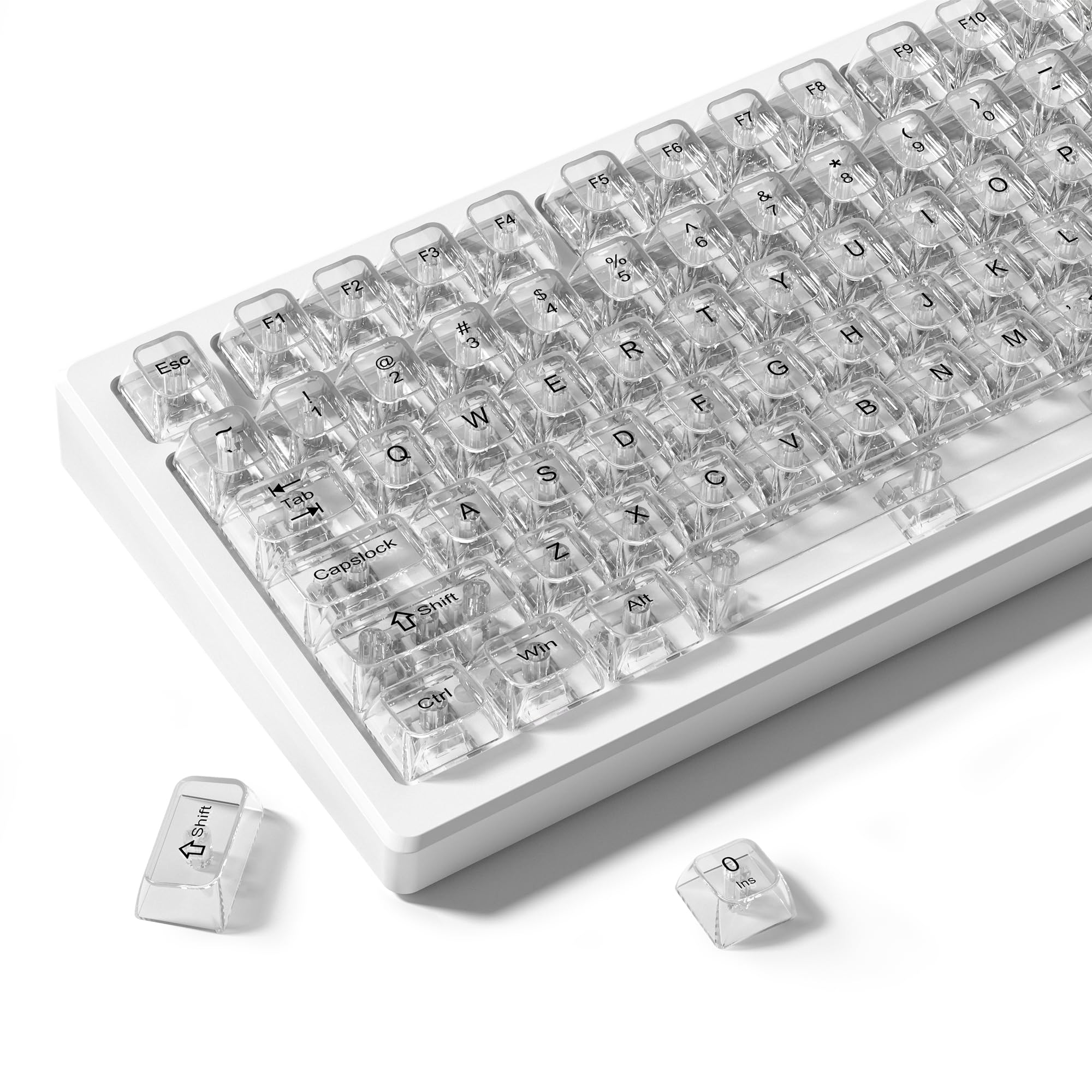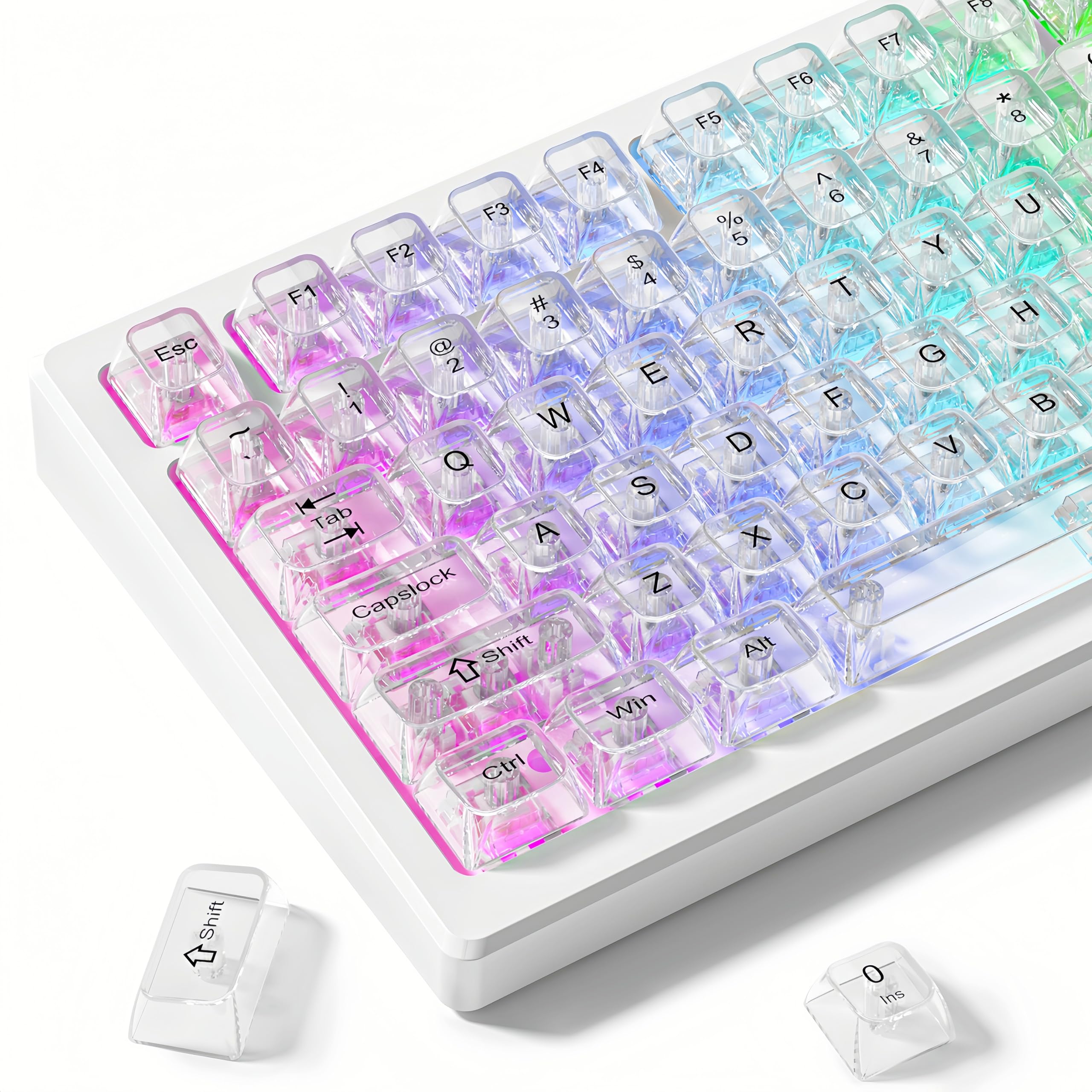パープルクリアキーキャップ、透明キーキャップセット、MDAプロファイル、MXスイッチ対応メカニカルキーボード用、115キー、光を通すクリスタルキーキャップ、セラミックスタイル (ホワイト)
