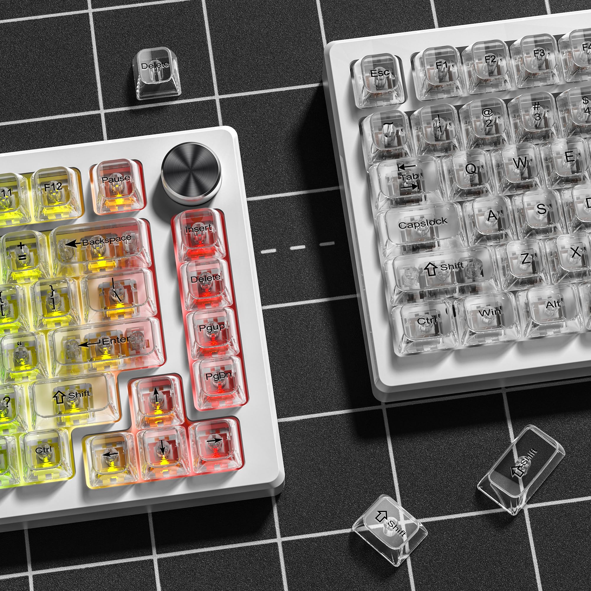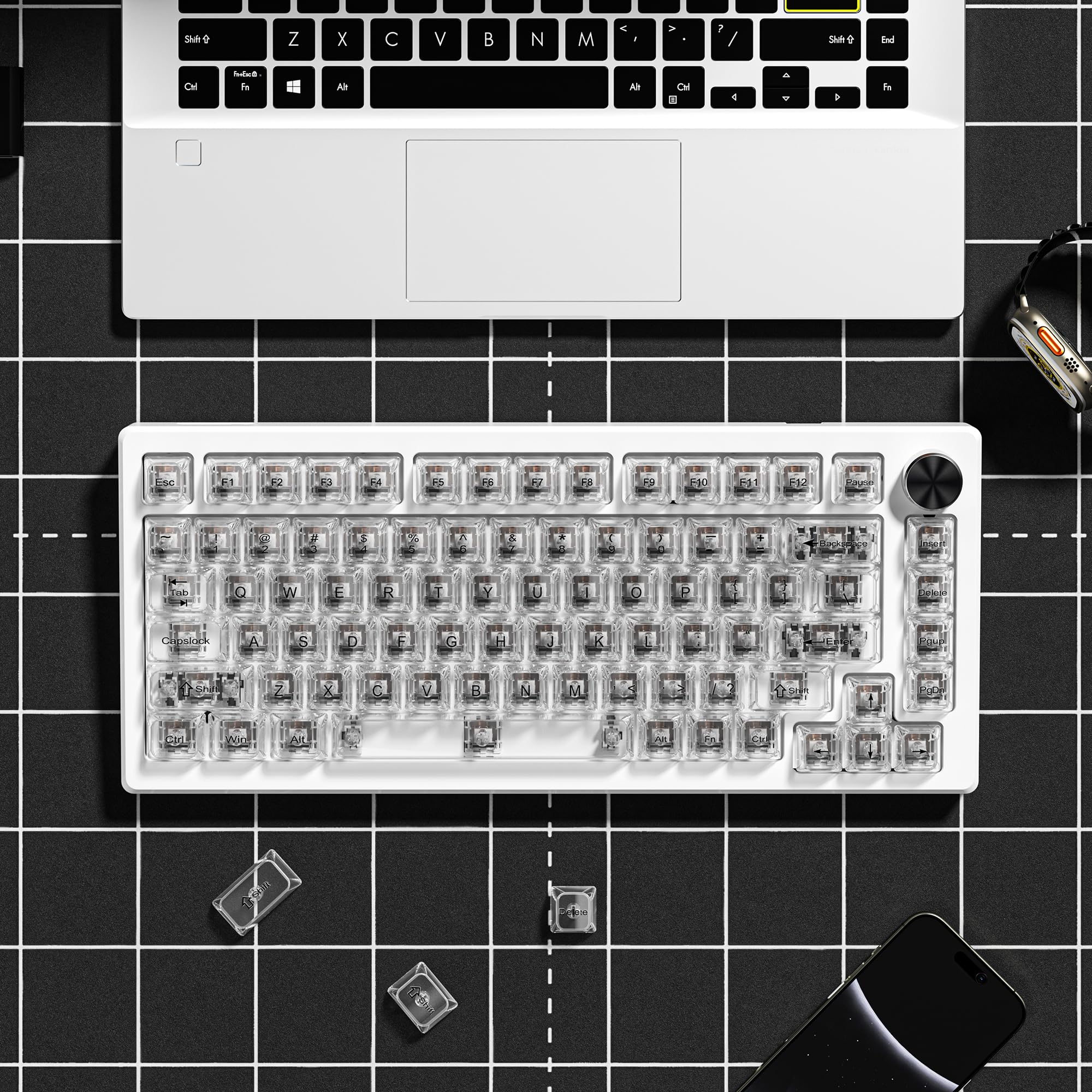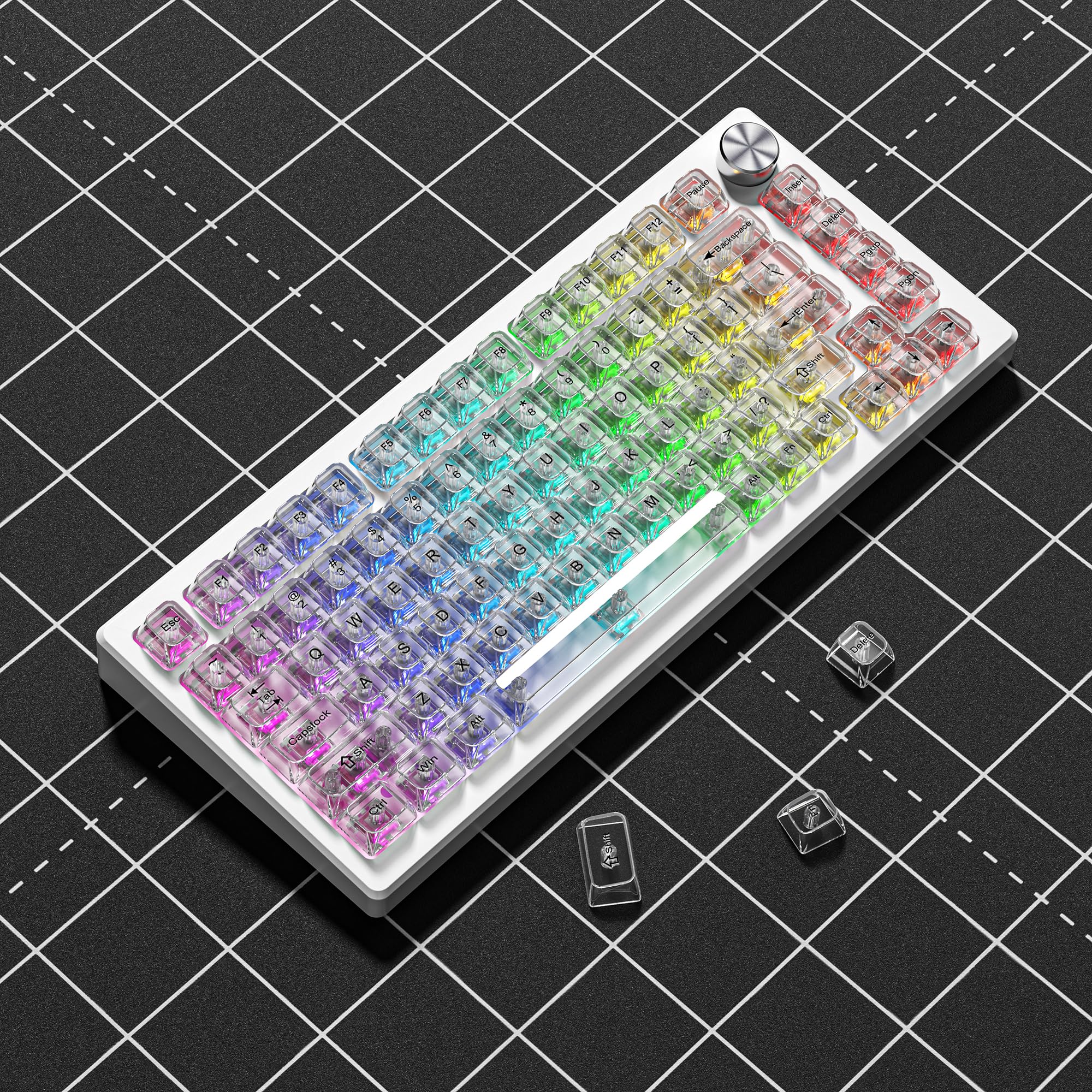 Womier L75 ワイヤレスメカニカルキーボード、75%レイアウト、ホットスワップ対応、ガスケット構造、RGBバックライト、事前潤滑済みスイッチ、クリスタルジェリPBTキーキャップ、ノブ付き、2.4GHz/USB-C/BT5.0