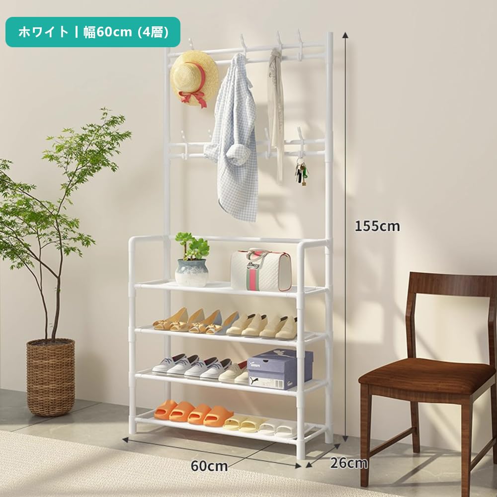 SKW 玄関シューズラック L字型 組み立て簡単 大容量 省スペース おしゃれ 靴棚 (ホワイト, 幅60cm (4層))