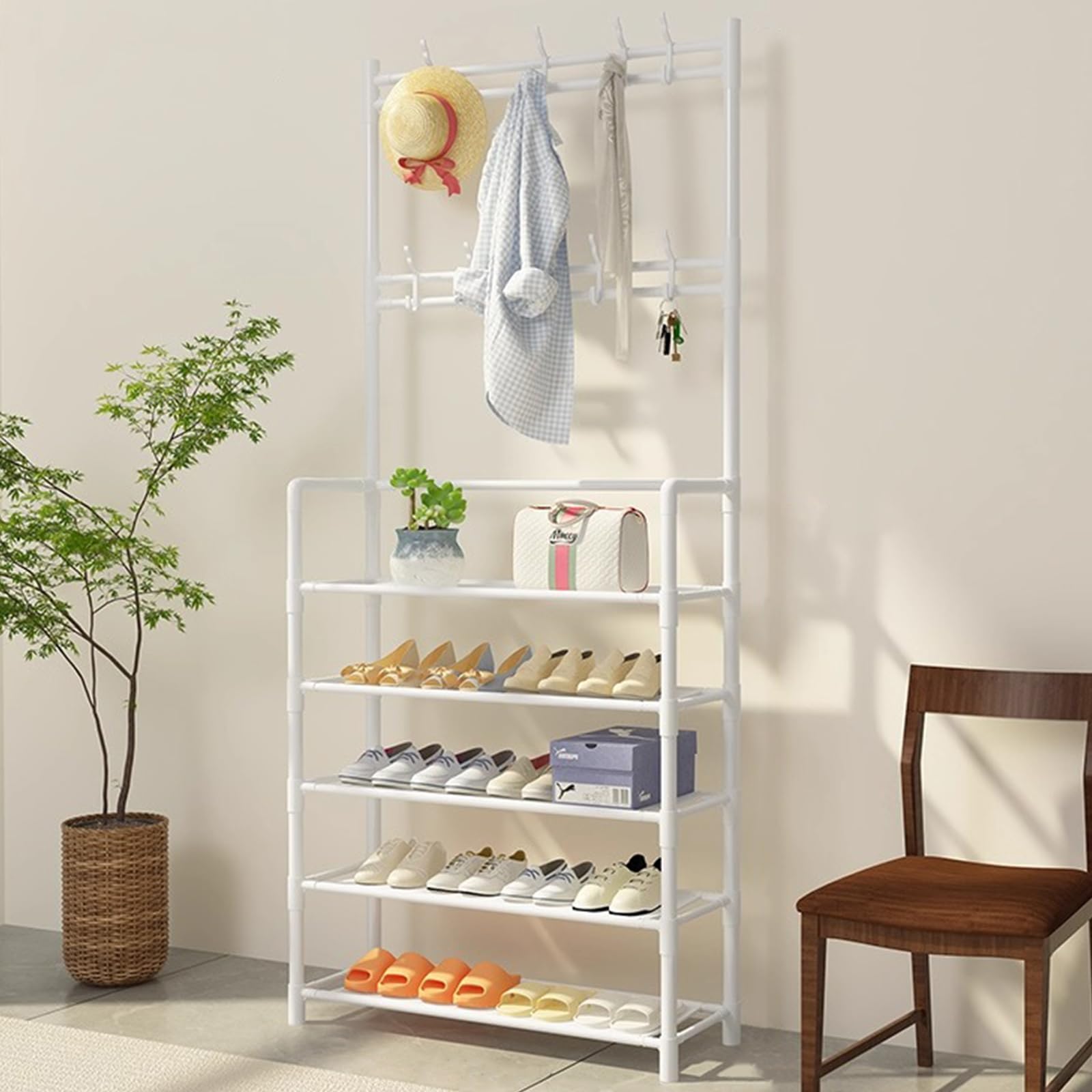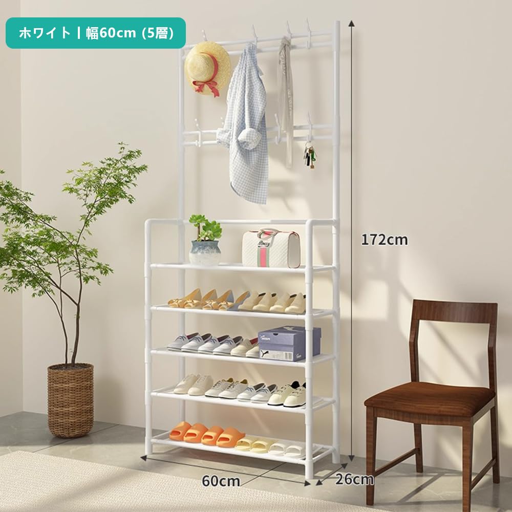 SKW 玄関シューズラック L字型 組み立て簡単 大容量 省スペース おしゃれ 靴棚 (ホワイト, 幅60cm (5層))