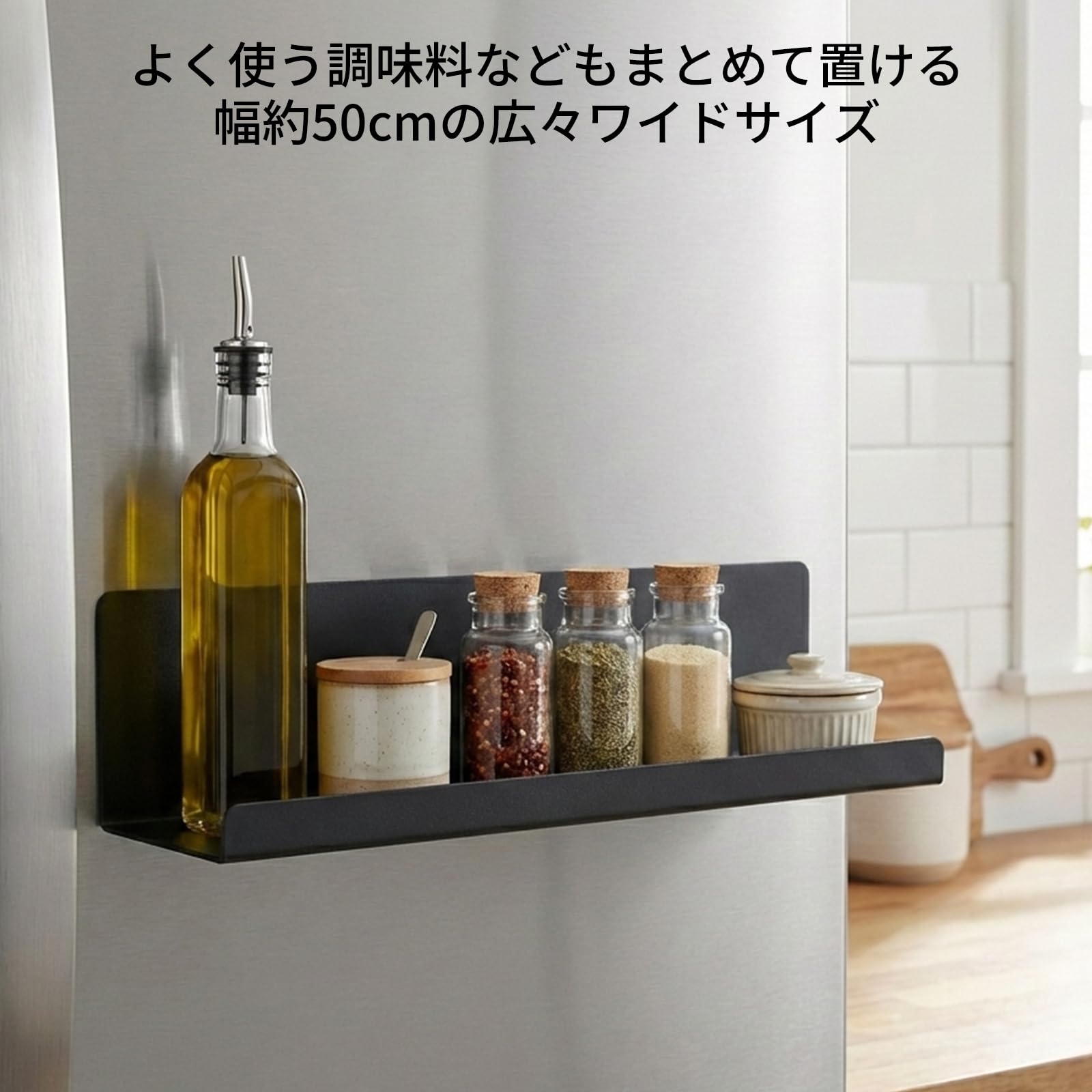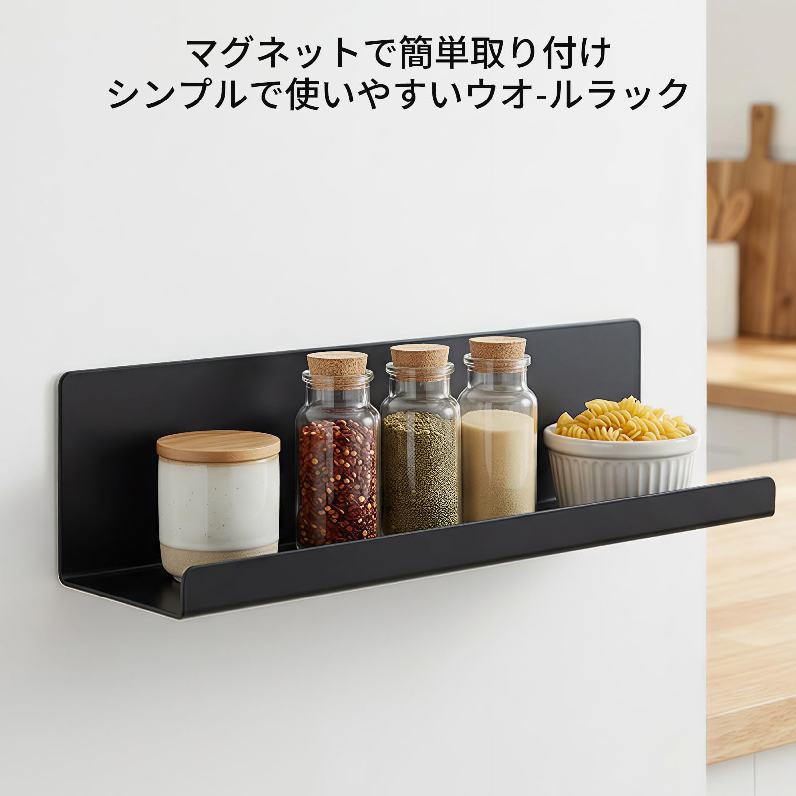 Homstrack マグネット キッチンラック ブラック 幅40cm 超強力マグネット棚 大容量4kg耐荷重 調味料ラック 取り付け簡単 洗面台/冷蔵庫/お風呂用 マグネット収納 キッチンラック 黒