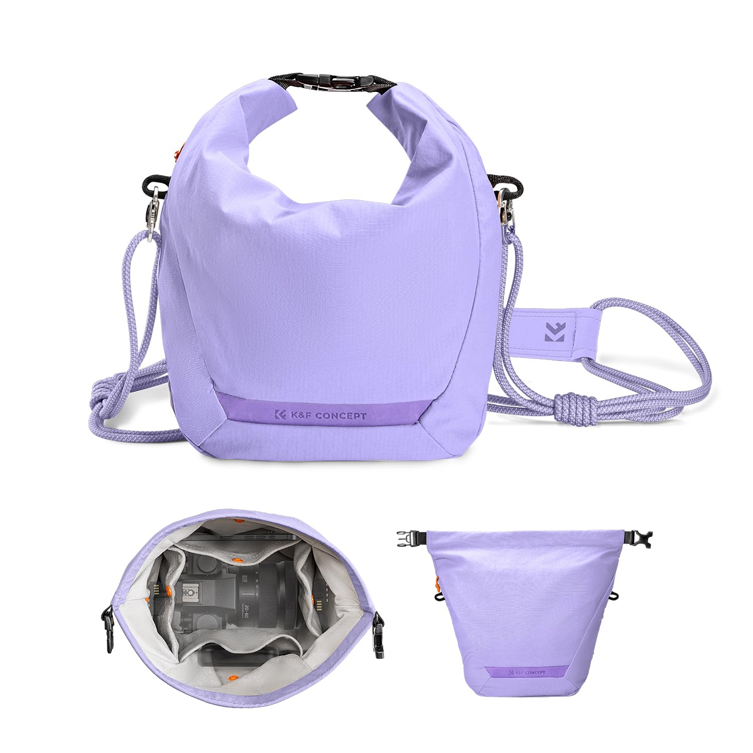 [K&F Concept]カメラクラウドポーチバッグ ロールトップドローストリング軽量カメラバッグ ショルダーバッグ おしゃれ カメラケース ストラップ取り外しカメラバッグ 軽量ポーチ ポーチ ミラーレスカメラショルダーバッグ カメラアクセサリー/小物入れ/デジタルカメラ収納バッグ