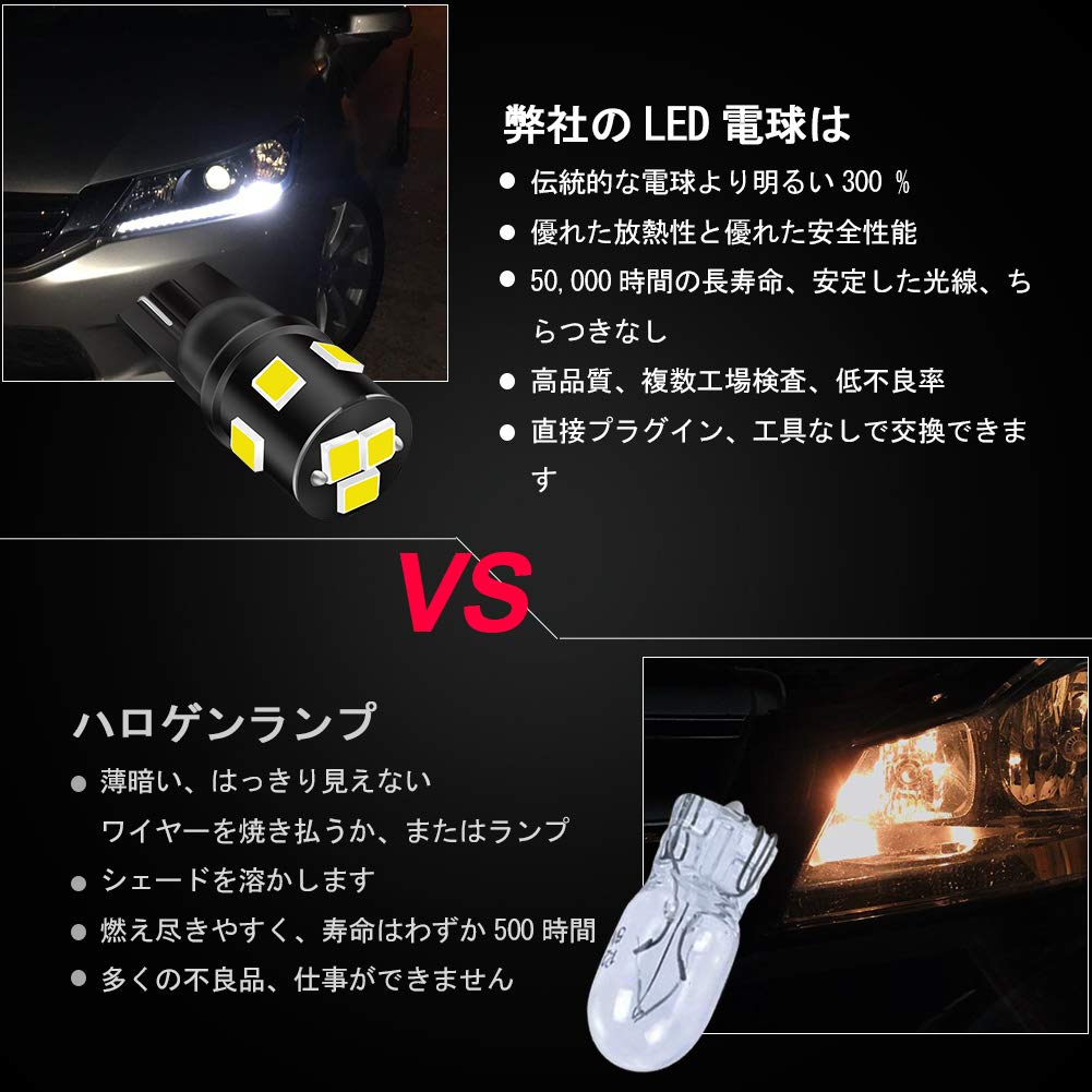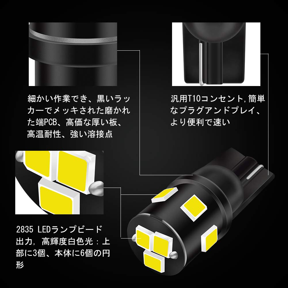 T10 LED ホワイト ポジションランプ 爆光 Safego 高輝度 led T10 車検対応 12V 9連SMD2835 LED チップ ウェッジ電球 ルームランプ/ナンバー 10個