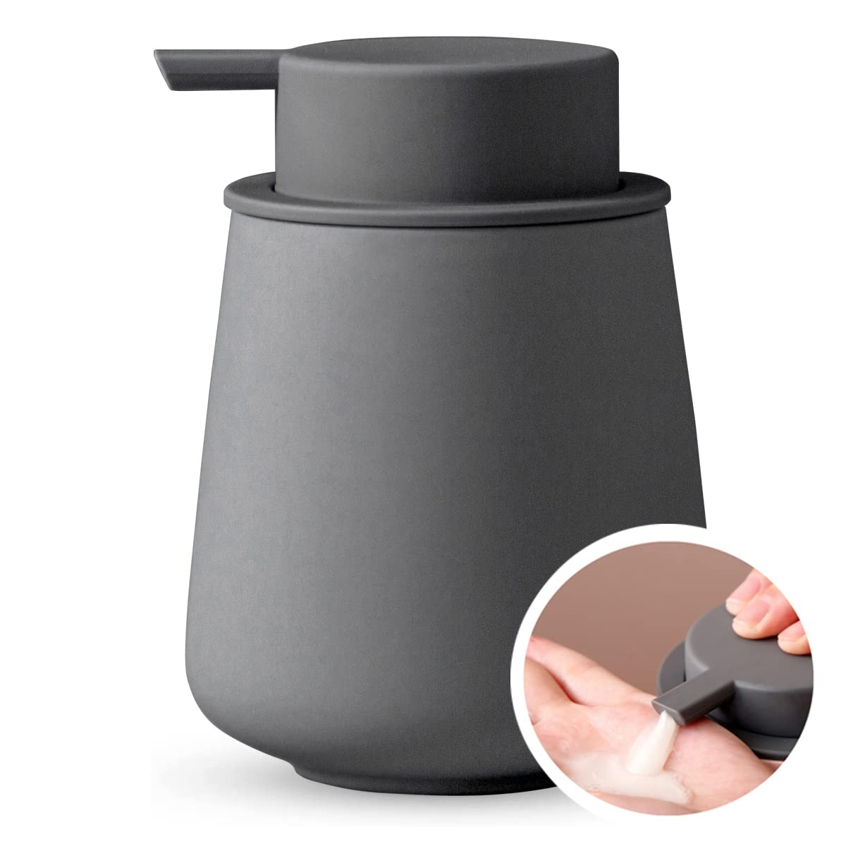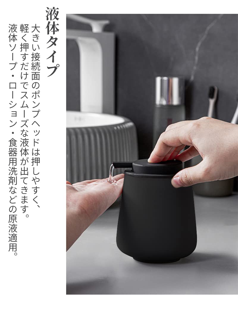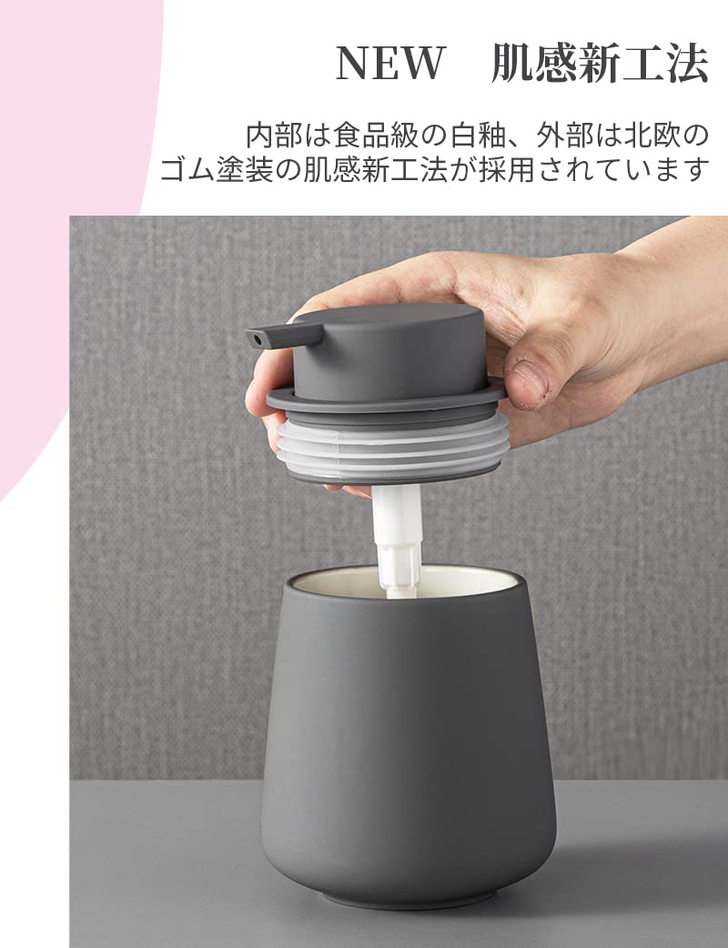 KAWEINA【NEW肌感新工法】ハンドソープボトル ソープディスペンサー 液体 手動 押しタイプ ポンプ式 手洗い セラミック 磁器 陶器 広口 ディスペンサー 詰め替え ハンドソープ用 食器用洗剤 北欧スタイル 台所 キッチン 洗面所 トイレ バスルーム お風呂場 (グレー, 液体タイプ)