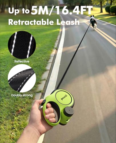 Pecute 伸縮リード 引き込み式犬リード 巻き取りがスムーズで 強いナイロンテープ 一時停止 小・中・大型犬対応 ごみ袋付き 荷重350kg 長さ5m