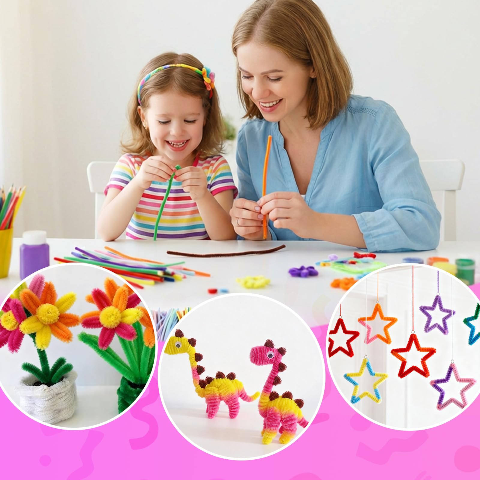 手芸モール 約100本 6mm カラーモール DIY造花セット モールフラワー 手芸キット インテリア飾り/手芸用 工作モール 記念日/誕生日/母の日/バレンタインデー贈り物 (キラキラ混色 10色)