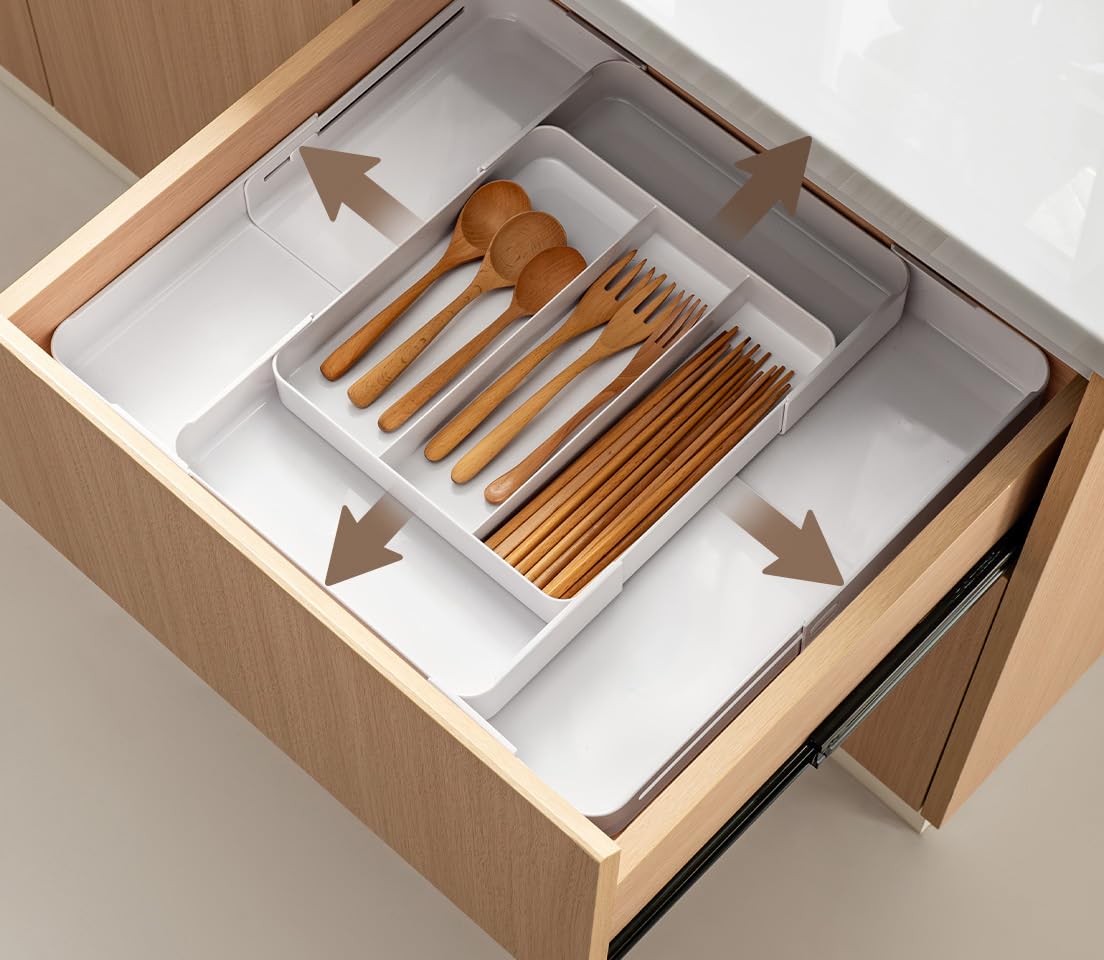 引き出し収納ボックス キッチン用 伸縮式 カトラリー仕切り 箸収納 多機能 整理整頓 仕分けトレー (4方向伸縮式)