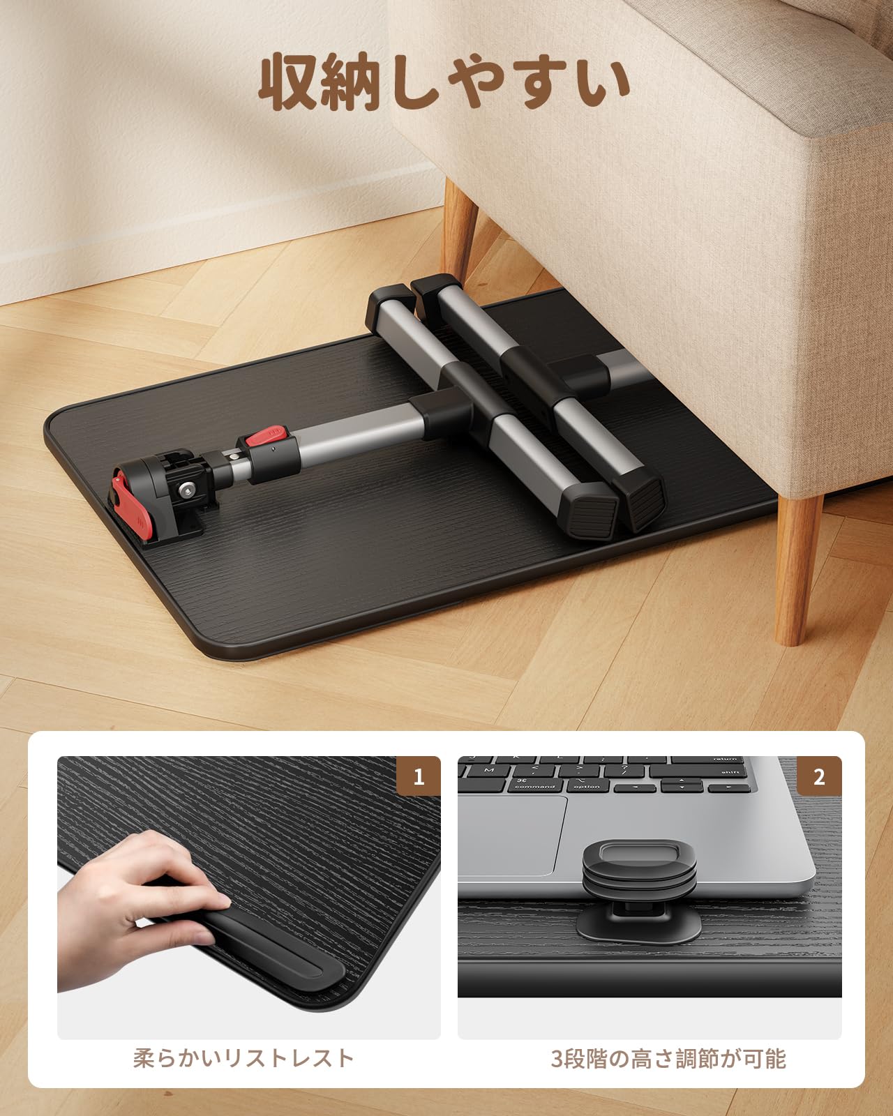 SAIJI 膝上テーブルクッションテーブル コンフォーツ 超軽量 持ち運び便利ノートパソコン用ラップデスク 15.6インチまで対応 3段階の高さ調節 母の日プレゼント 膝上作業 ソファー/ベット/車/オフィスで利用可能なミニマルなデザイン