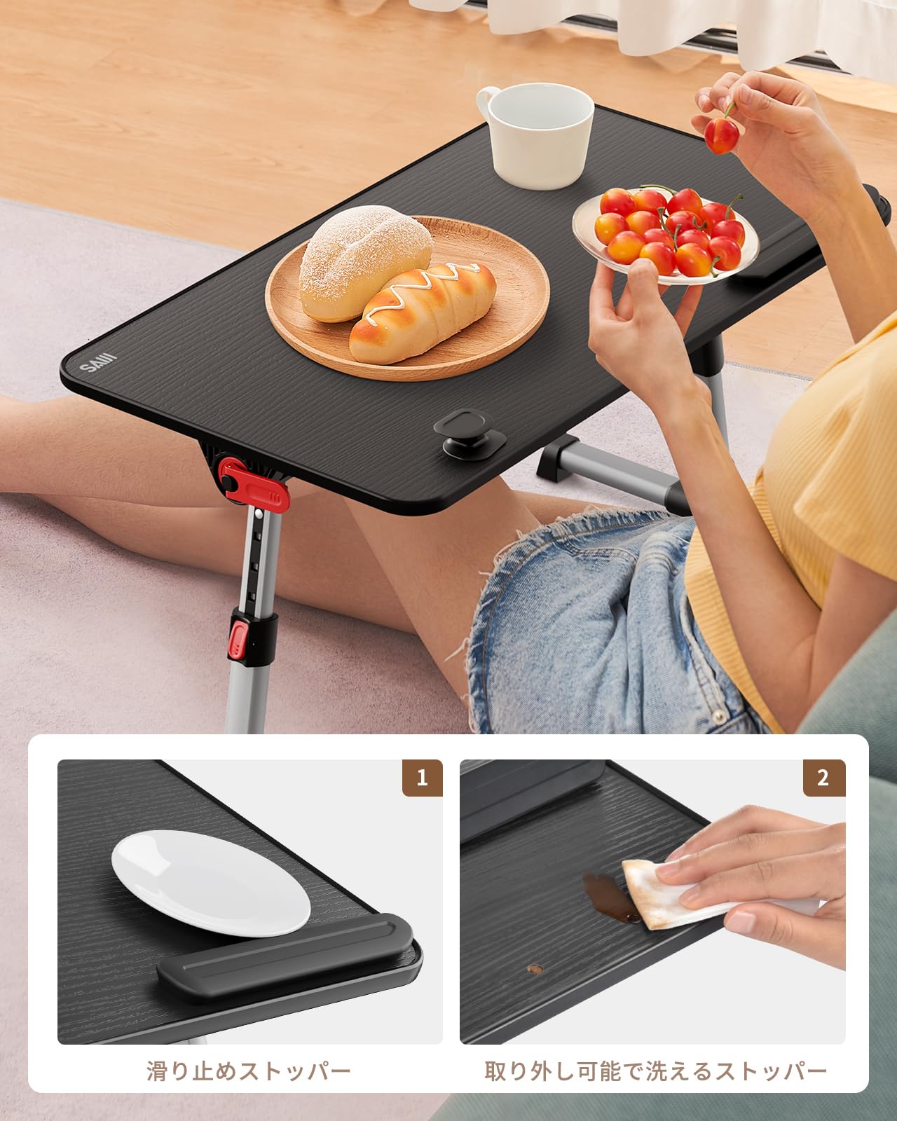 SAIJI ベッド デスク 折りたたみテーブル ベッドテーブル PCパソコンテーブル ローテーブル オフィスデスク ラップデスク 腕保護 高さ 角度調節可能 軽量 勉強 一人暮らし