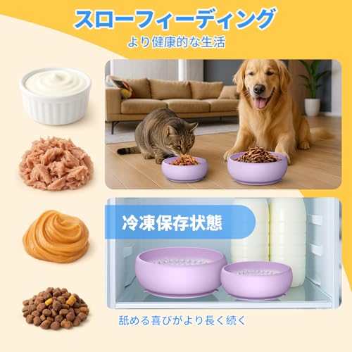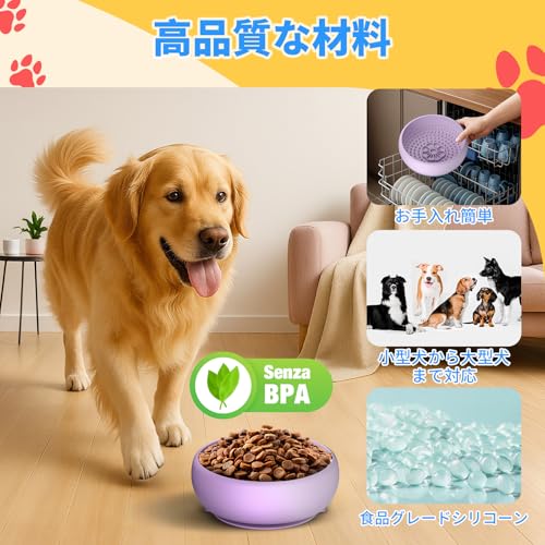 CHEWFFONインタラクティブドッグリックマットボウル、BPAフリー珪素ドッグスローフィーダーボウル(吸盤付)、犬・猫用ノンスリップフードボウル、退屈と不安を軽減、食器洗浄機対応、レインボー