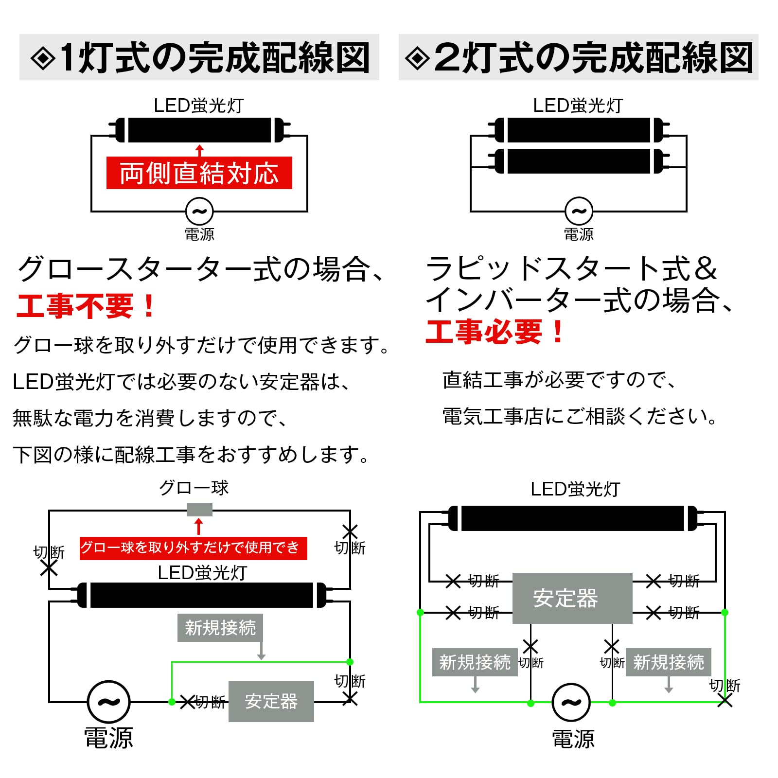 LED蛍光灯 20W形 直管 蛍光灯 20形 led 消費電力10W 高輝度 1100lm 58cm 昼光色 グロー式工事不要 G13 照明 蛍光管 20W形 (4本入り)