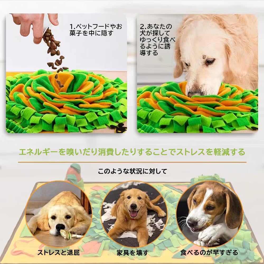 YFFSFDC 犬用ノーズワークマット おやつ隠し 玩具 小型犬 頭脳刺激 嗅覚トレーニング 早食い防止 分離不安 嗅覚訓練 集中力向上 運動不足 食いすぎる対策 耐久性 洗える オレンジ 45×75cm