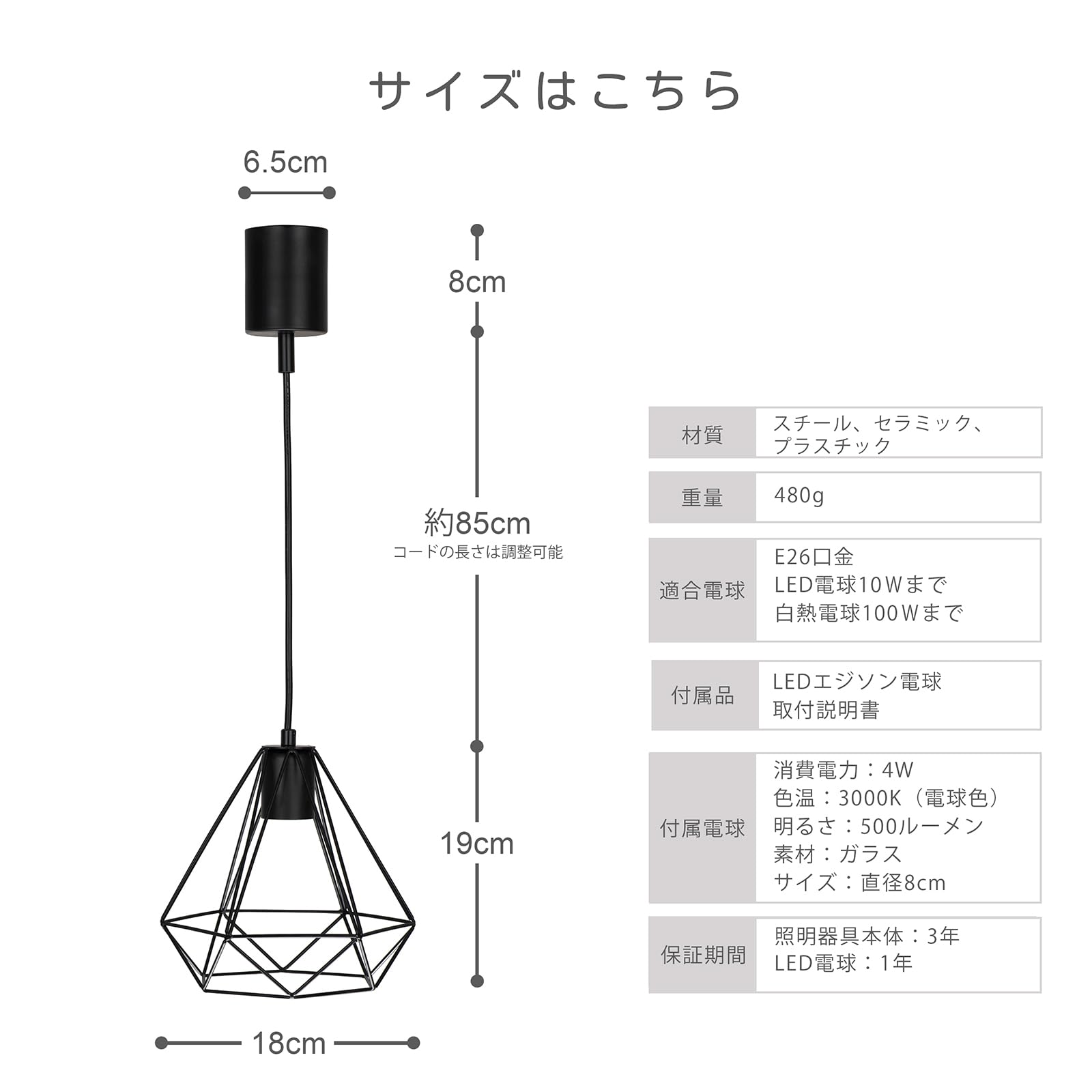 ペンダントライト アンティークレトロ 1灯 ダイニングライト吊り下げ照明 引っ掛け式 インテリア照明 E26 / E27口金 北欧 居間 食卓 玄関 キッチン レストラン 電球別売り 白
