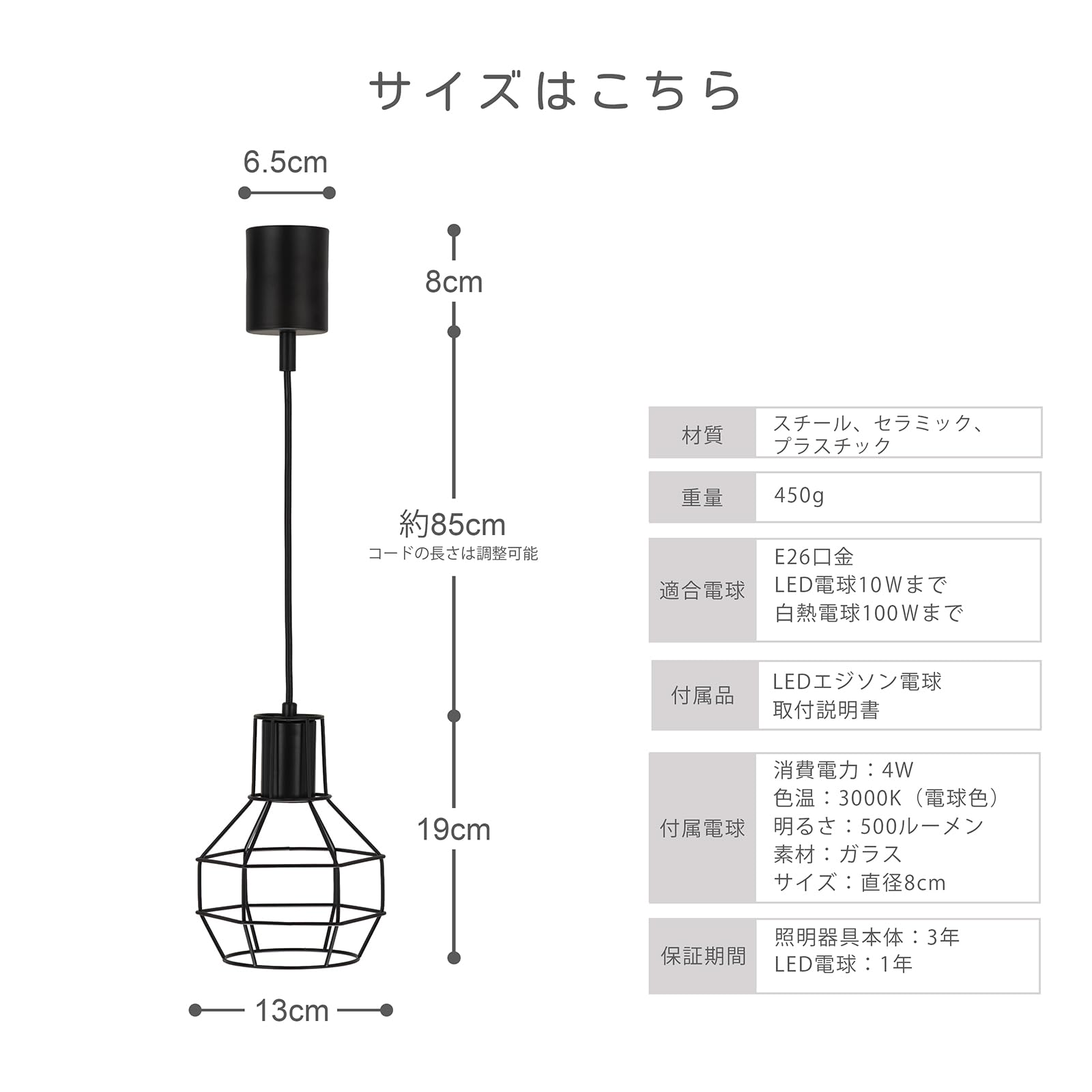 智光電気 ペンダントライト スチール製ワイヤーシェード E26口金|LED電球対応|黒 ブラック|選べる幾何デザイン|おしゃれ照明 吊り下げライトおまけ電球付き (バルブ型・ダクトレール用・3個)