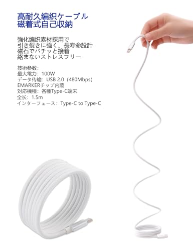 ArtO Core 35W 充電器+1.5m自巻きケーブルセット PD/PPS/QC3.0対応 Type-C+USB-A 歯ブラシ~iPhone16/Galaxy S25/Switch対応 急速充電 折りたたみプラグ (black)