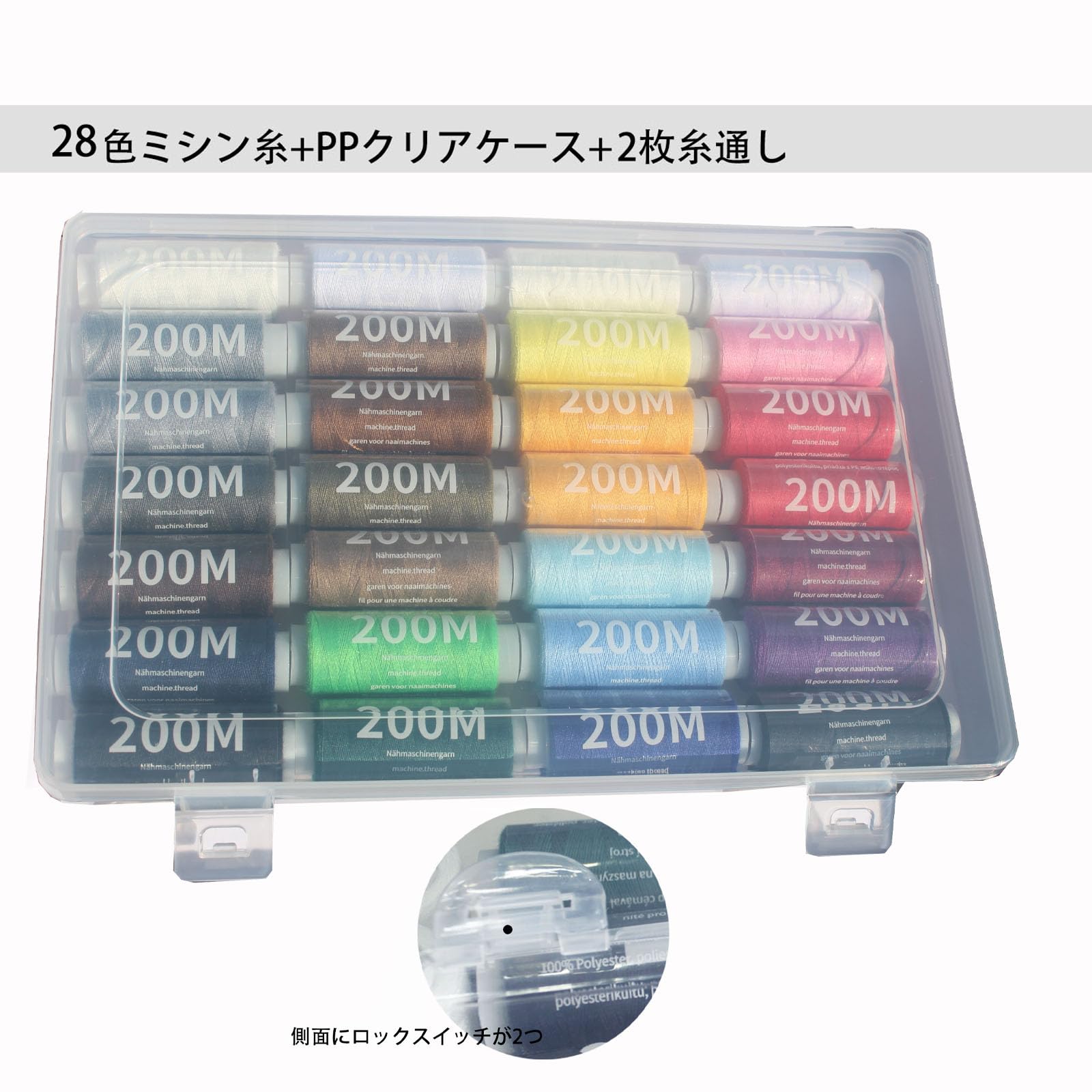 CHUXI 裁縫28色セット ミシン糸 31個セット 家庭 糸通し 裁縫DIY刺しゅう用 手縫い 糸 セット 家庭ミシン用糸 丈夫で縫いやすいミシン 糸 収納ケース常備糸200m (31)