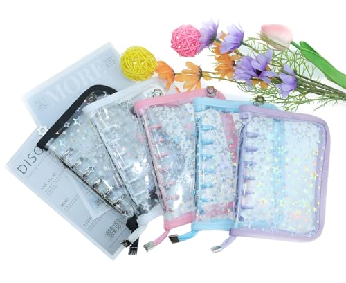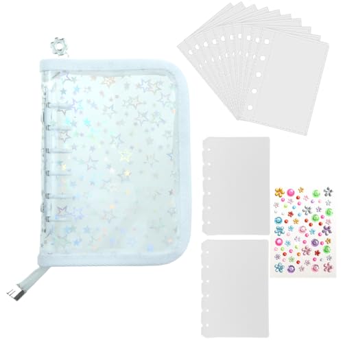 Virtarlux シール帳 透明 女の子 はがせる A6 シールバインダー シール手帳 クリアバインダー 6穴 マイクロ6 シール収納 詰め替え可能 20枚リフィル入り 推し活グッズ (A6ホログラム星柄入り)