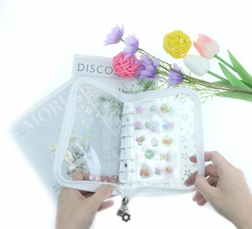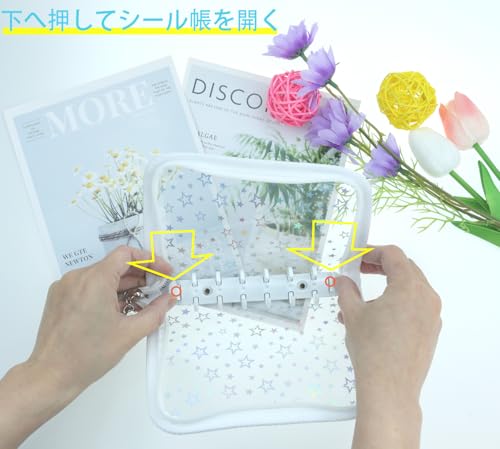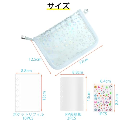 バインダー シール帳 シール収納 A7 ホワイト 6穴 バインダー カード保護 透明スリーブ10枚 PP紙2枚 軽量 防塵タイプ シール収納 写真収納 星柄タイプ 透明なシール帳