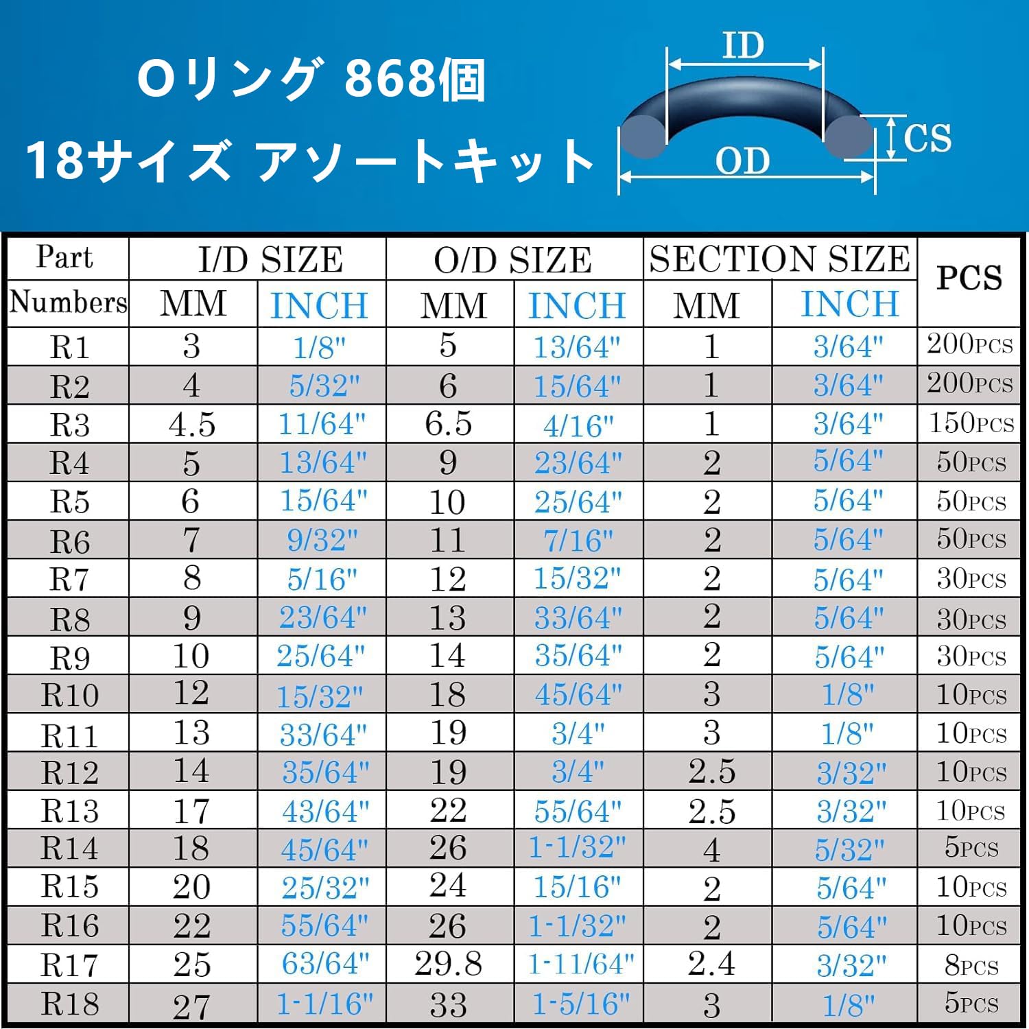 Shinkito Oリング セット ゴムパッキン シールOリング オーリングセット 18種類 収納ケース付き 225個入 内径3~22mm オーリング ニトリルゴム シールガスケット 耐油 耐摩耗 耐熱 機械修理 配水管設備 (225PCS)