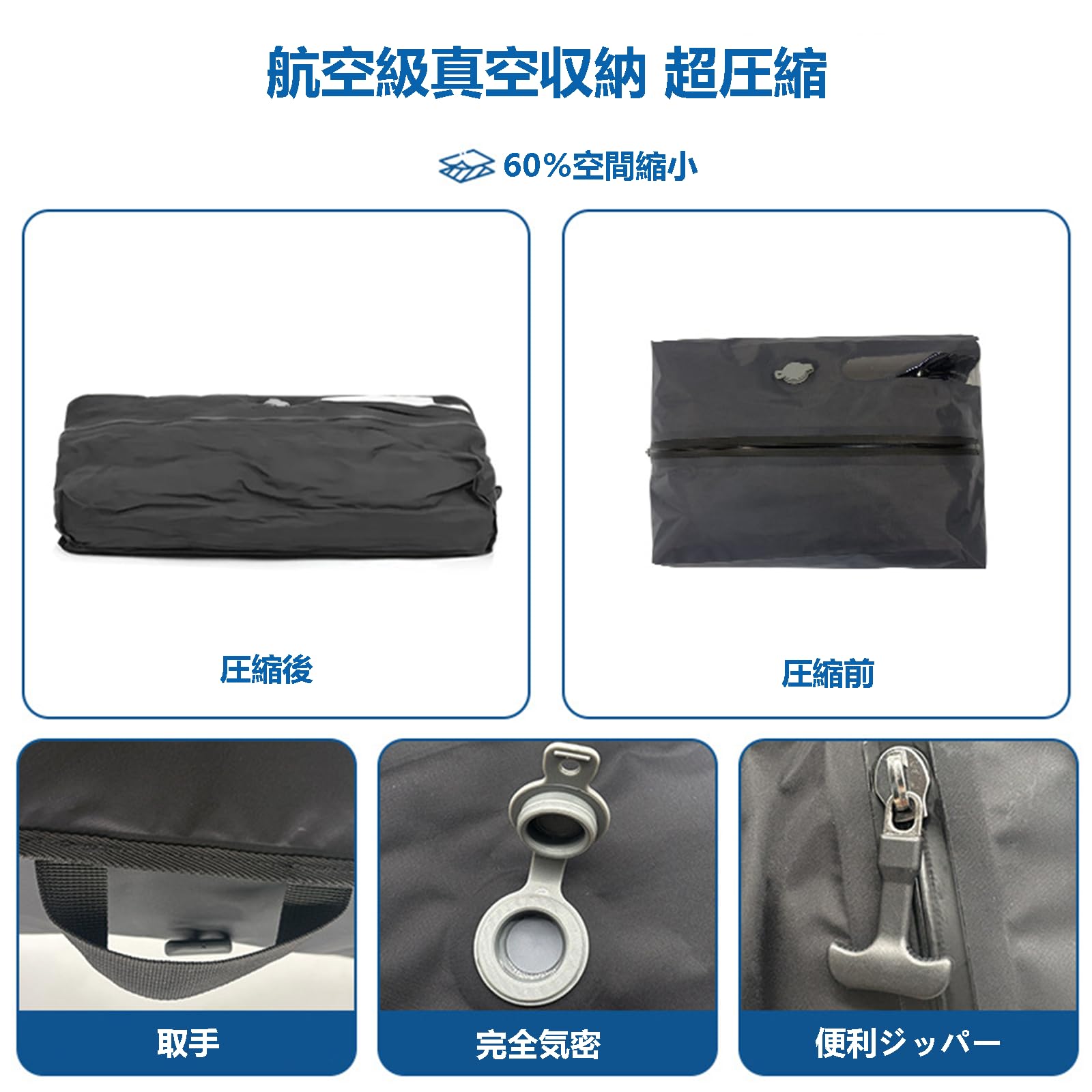 トラベルポーチ 圧縮トラベルバッグ 旅行用圧縮袋 真空圧縮バッグ 圧縮バッグ 便利グッズ 高密封 防水防臭 衣類収納 省スペース トラベル 高耐久性 軽量 出張 旅行収納 大きめ (ポンプなし)42×32×15cm