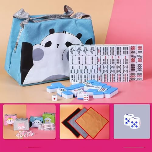 麻雀牌 麻雀セット 144枚 収納バッグ付き 麻雀マット付き 超軽量 麻雀パイ 携帯便利 ポータブル 家庭 旅行用 初心者 ミニ 持ち運び便利 サイコロ2個 樹脂材質 おもちゃ ブルー 24*16*12mm