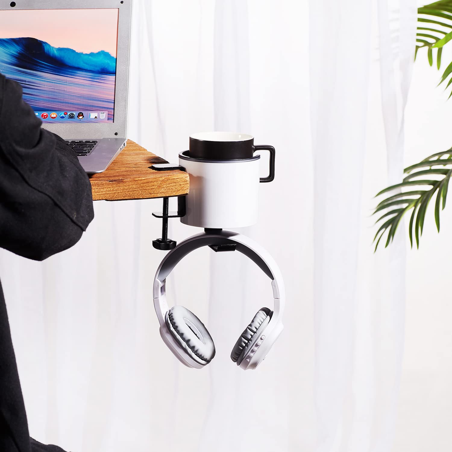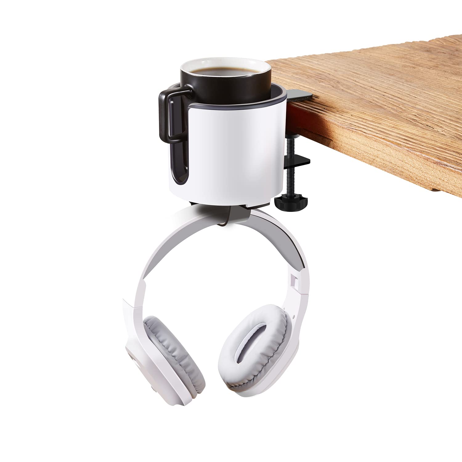 3 in 1ドリンクカップホルダー デスク ヘッドホンスタンド カップホルダー ペットボトル 多機能収納ラックコンピューターデスクイヤホンホルダー ヘッドホンハンガー ゲーミングヘッドセット クランプ式 (ホワイト)