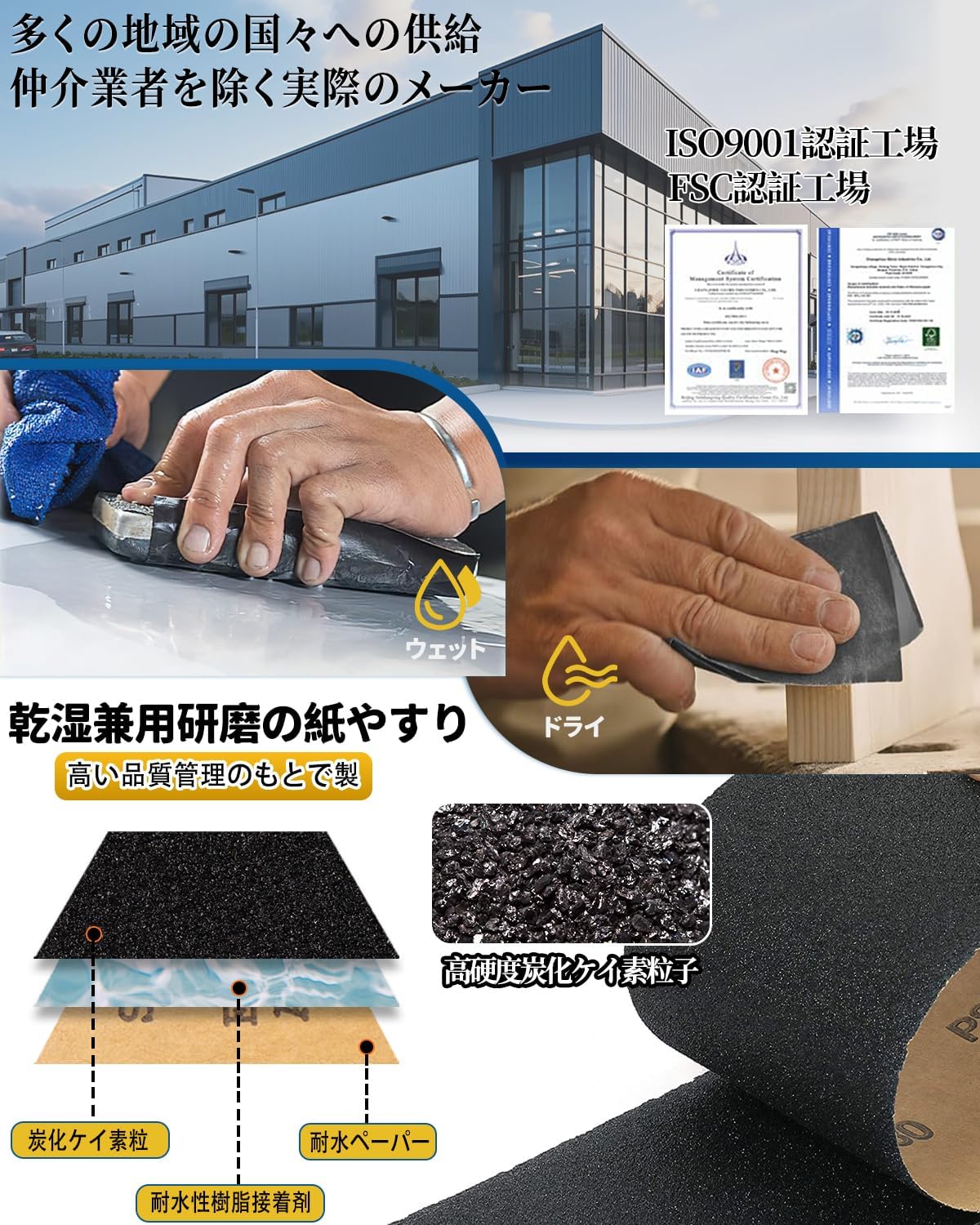 STEBREAM 紙やすり サンドペーパー 93x230mm 14枚 7000番 耐水ペーパー 紙ヤスリ 自動車用研磨 金属 壁 木製家具 耐水ヤスリ