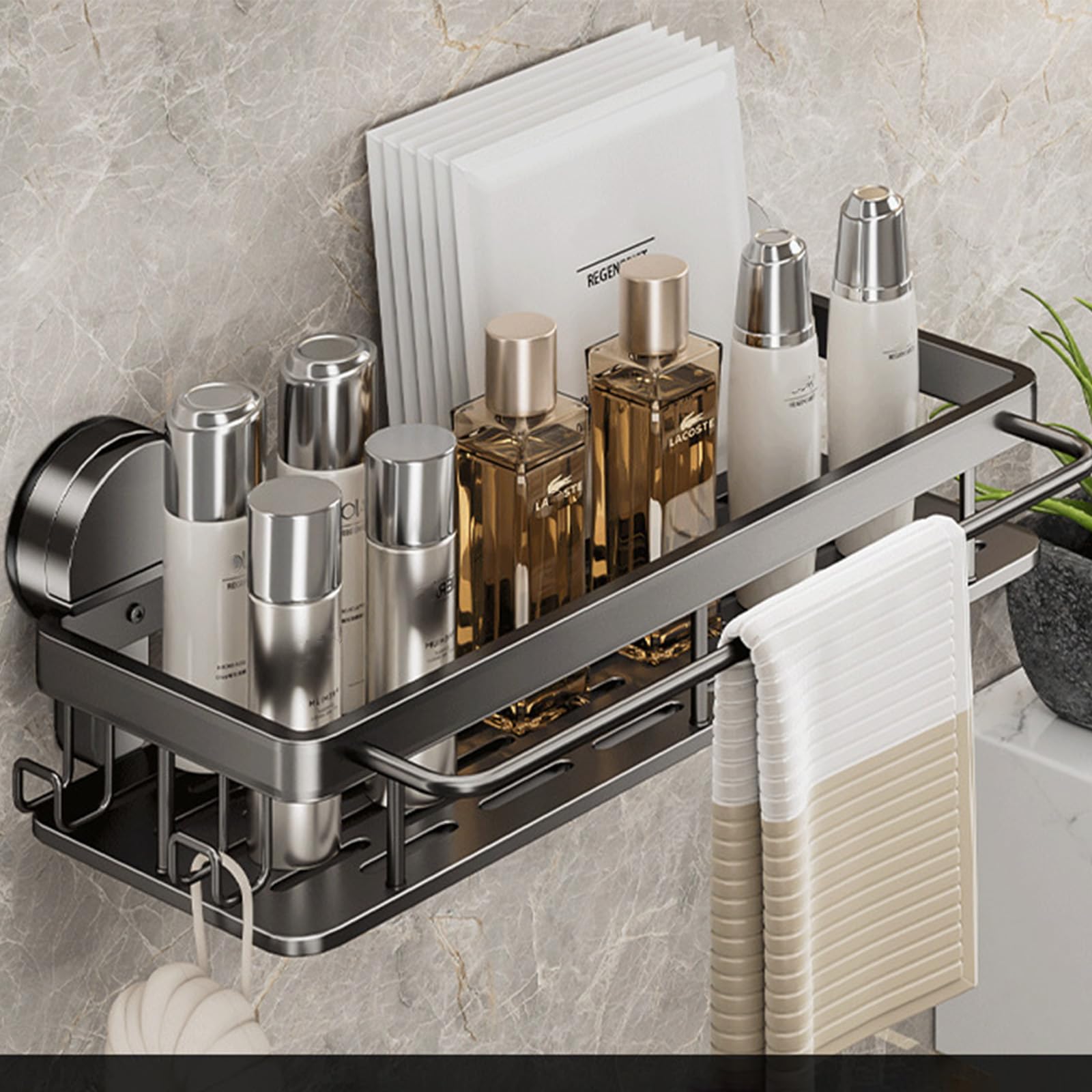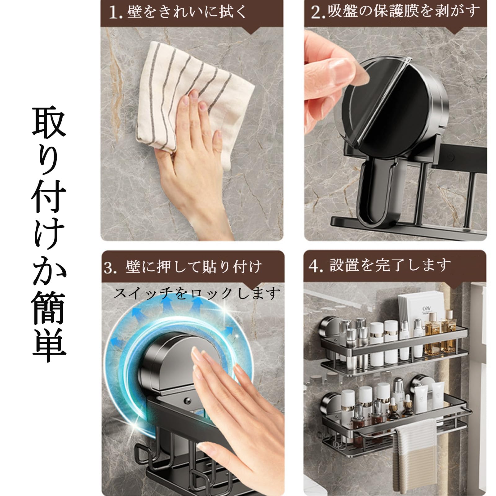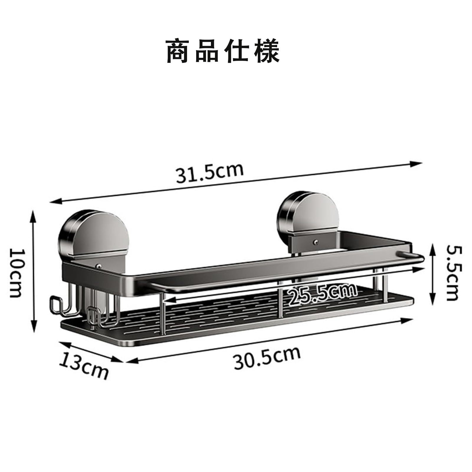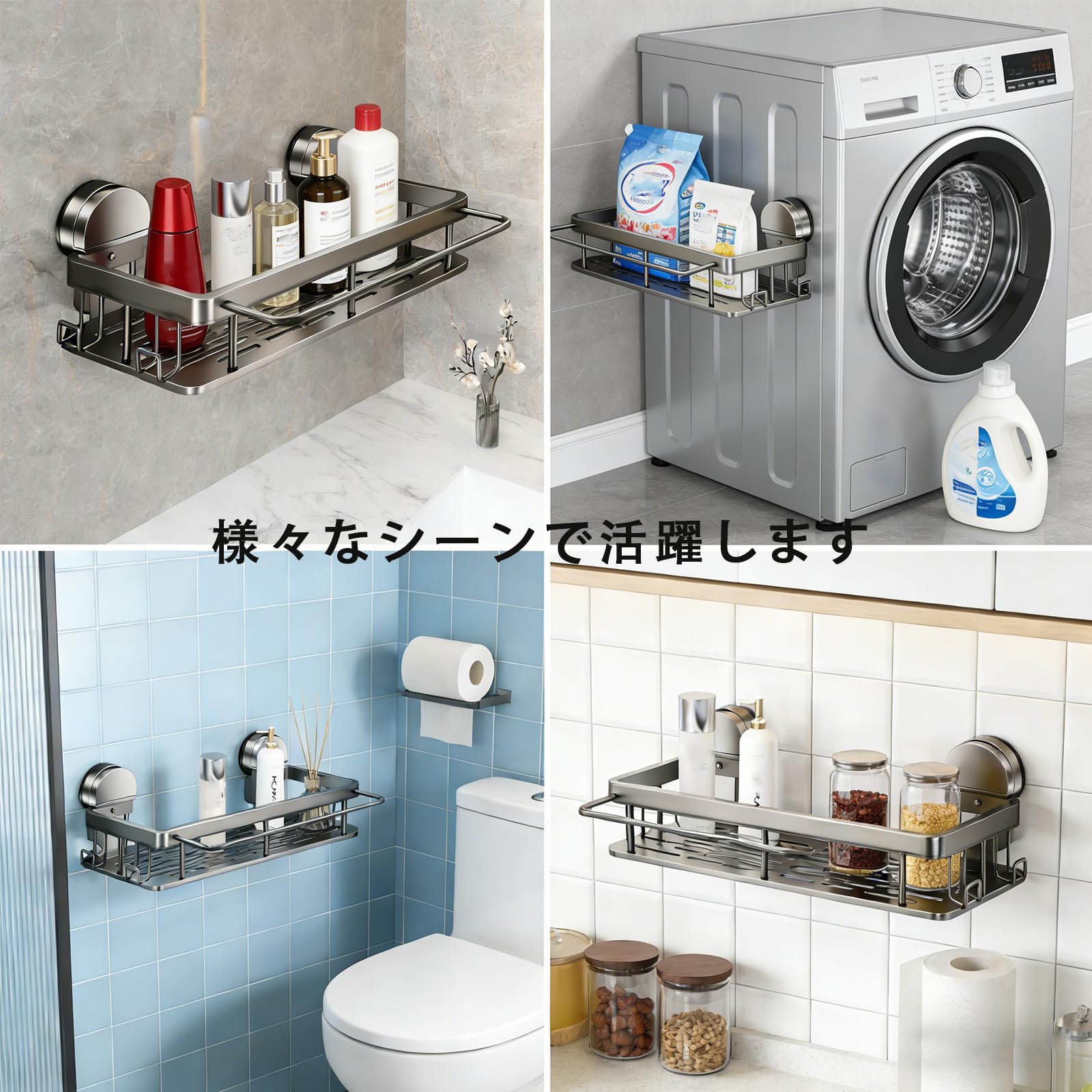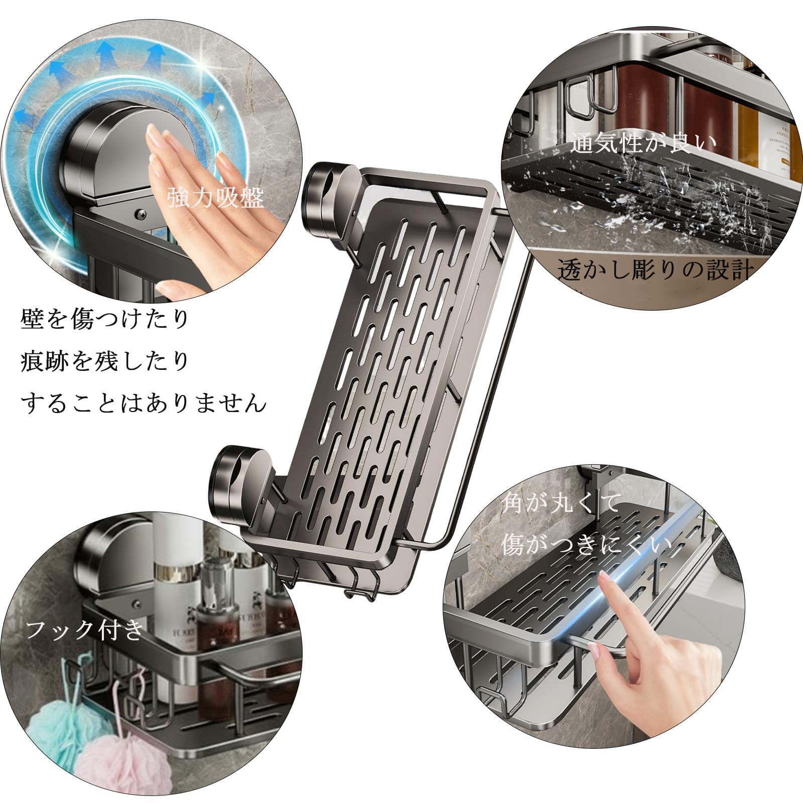 Vixplorn 浴室 ラック 強力吸盤 お風呂 棚 壁掛け 防水 防錆 シャンプーラック 省スペース 水切り 穴あけ不要 簡単に設置 洗面所 キッチン収納用 アルミニウム製 ブラック