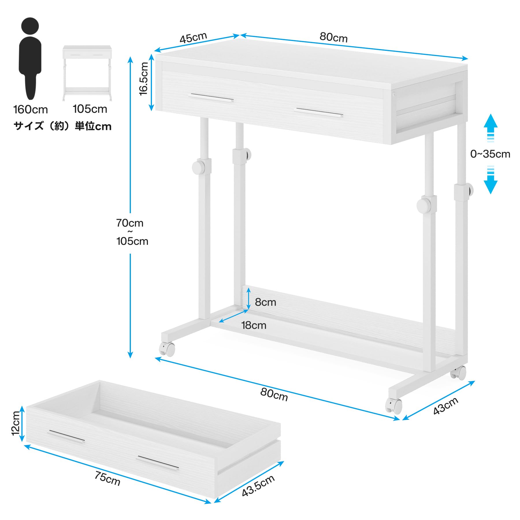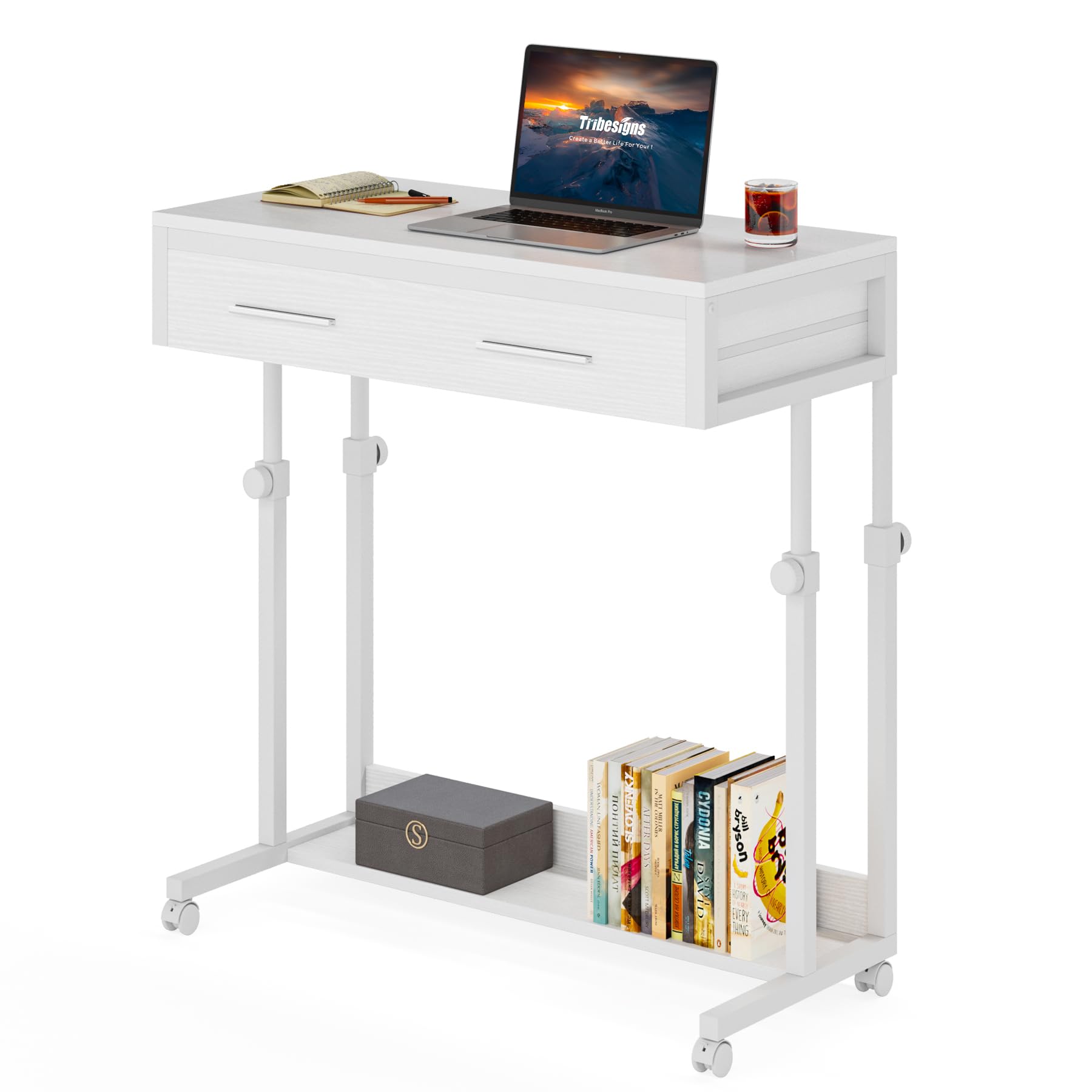 Tribesigns 昇降デスク 幅80 引き出し付き キャスター付き ソファサイドテーブル ベッドデスク スタンディングデスク ホームオフィス用 昇降机 ホワイト 無段階 高さ調整 手動 学習デスク
