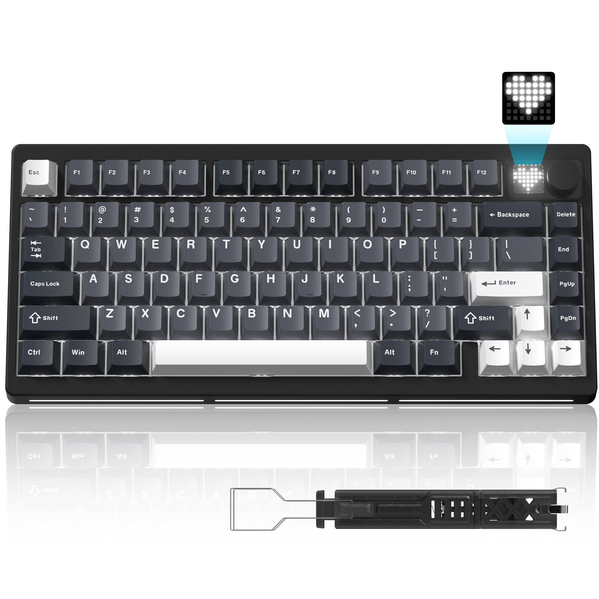 Womier 75%ワイヤレスメカニカルゲーミングキーボード、ノブ&ディスプレイ付き、Bluetooth 5.0/2.4GHz/USB-C対応、PC用クリーミーな打鍵感のキーボード