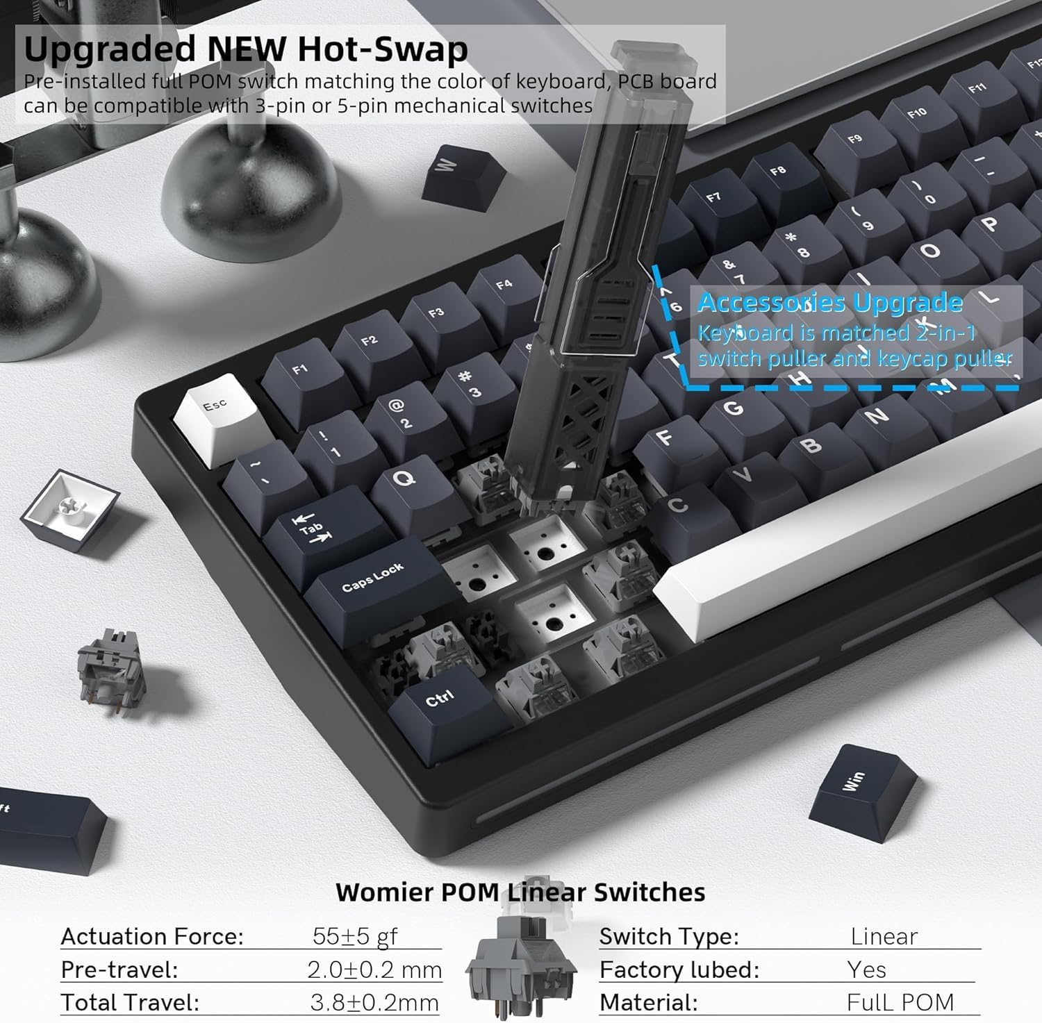 Womier SK71 PRO Bluetooth ゲーミングクリーミーキーボード - CNCアルミニウム合金メカニカルキーボード 2.4GHz ワイヤレス/Bluetooth/USB-C 有線ホットスワップ可能キーボード RGBバックライトカスタムキーボード
