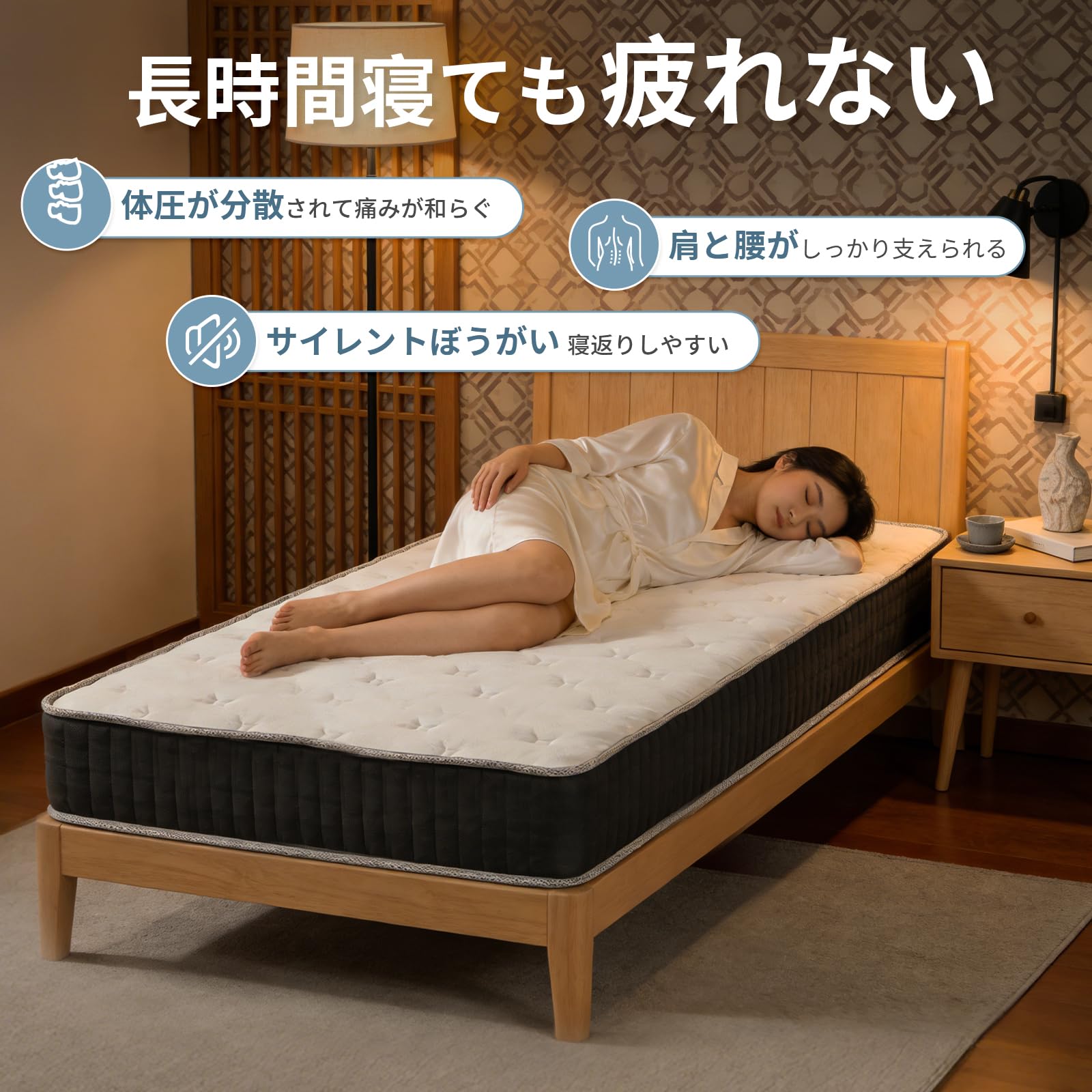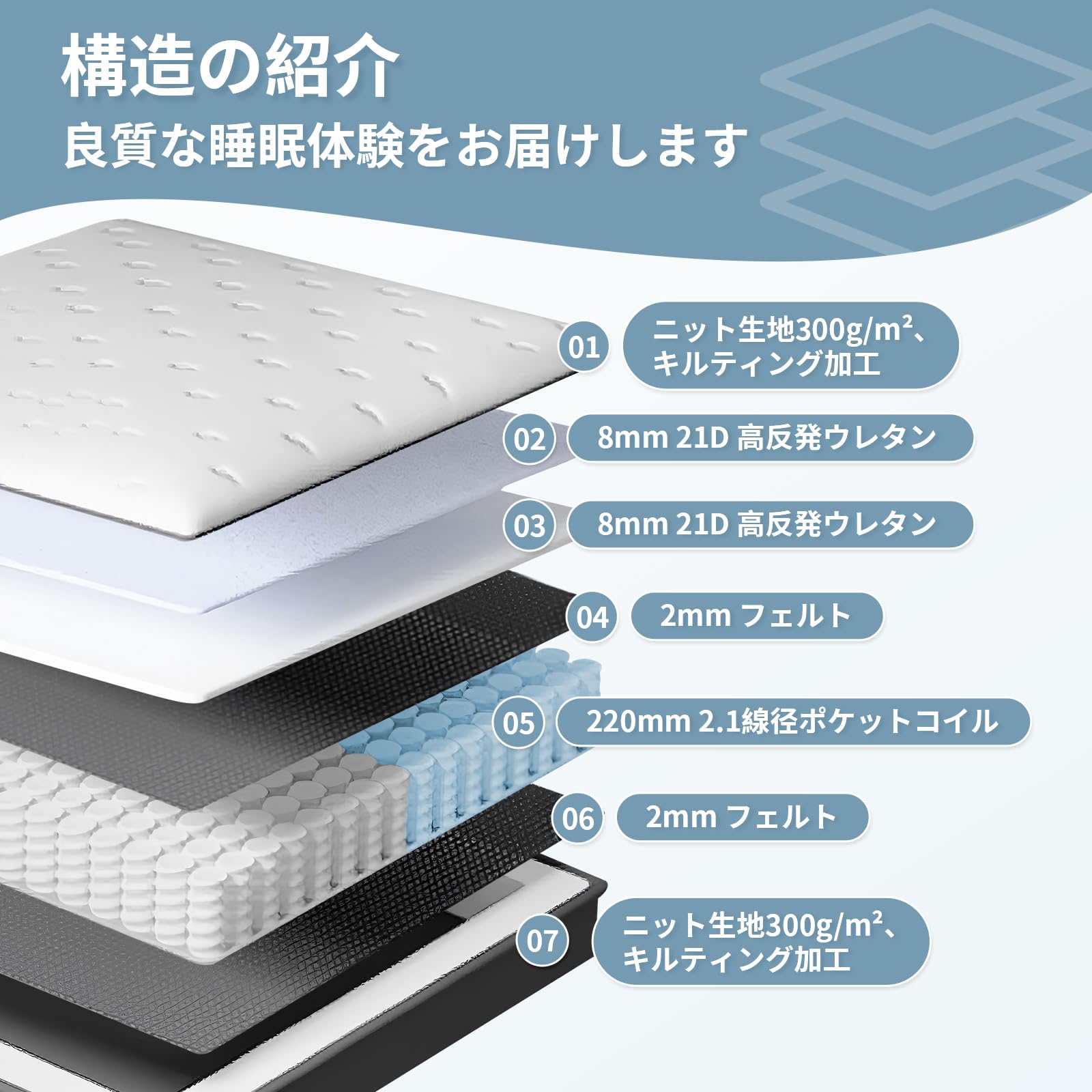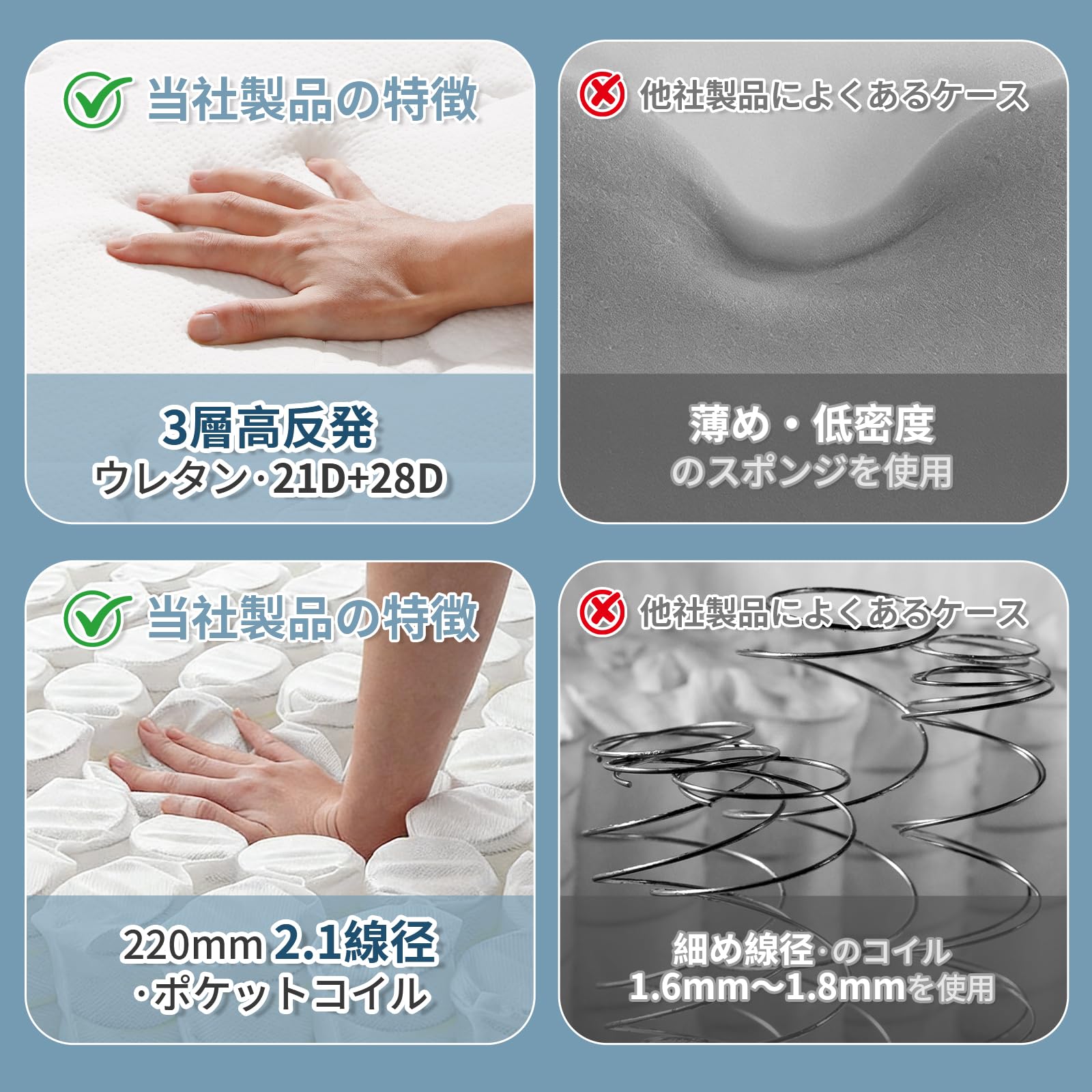 白雲海·マットレス シングル 極厚23cm 線径2.1mm 高密度独立袋装コイル 高密度ウレタン 体圧分散 高耐久 通気性 静音 | 圧縮梱包