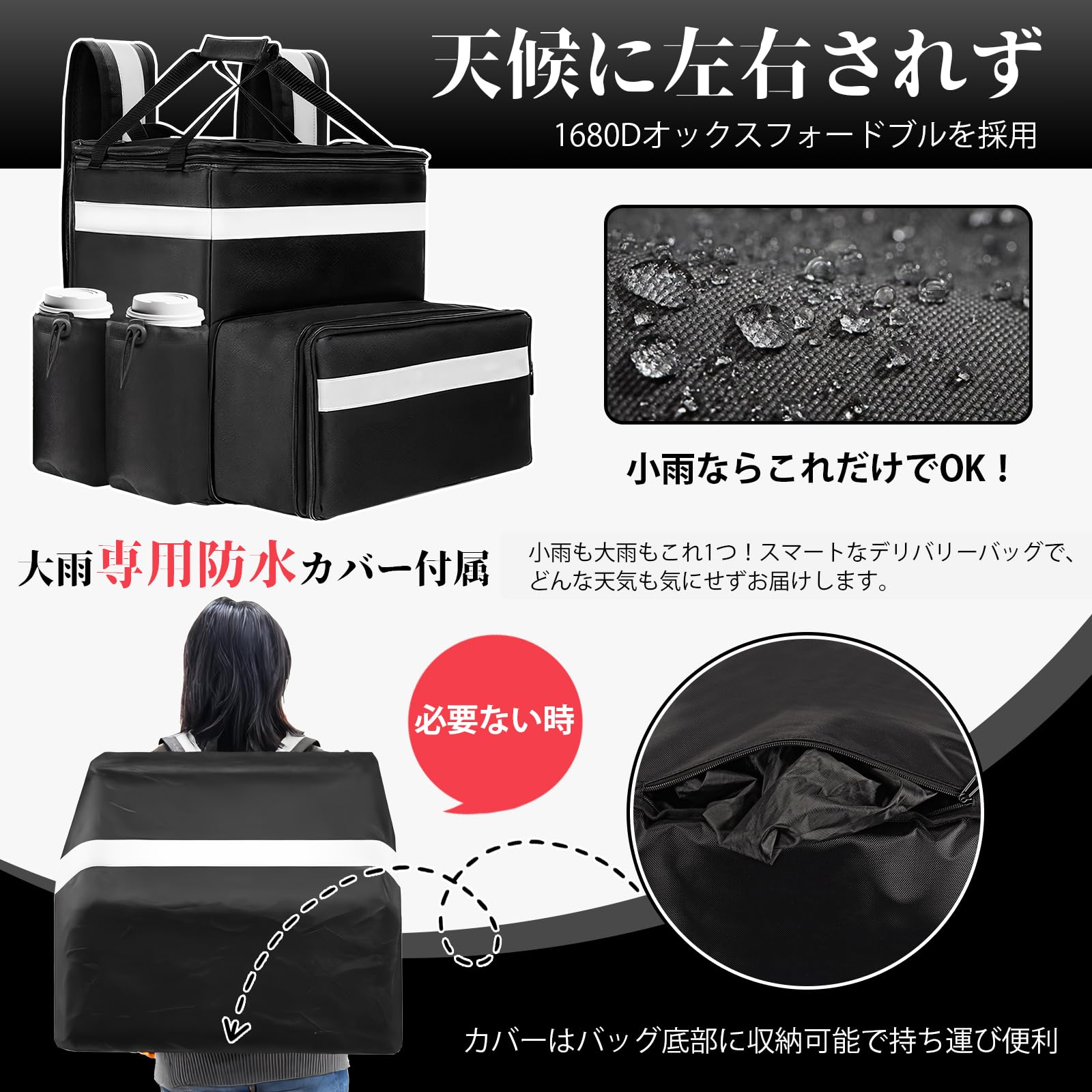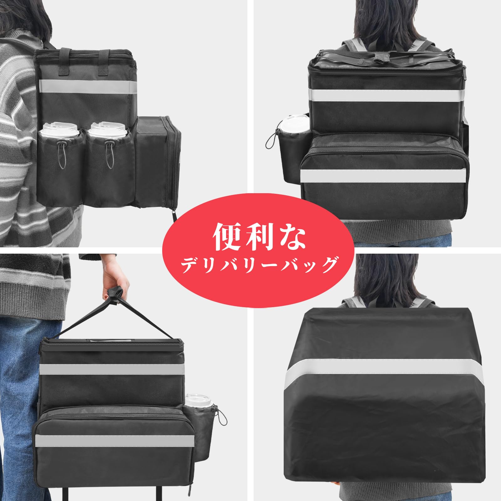 HAIKUSOUBI デリバリーバッグ 「専用防水カバー付き」 「拡張機能付き大容量48L」 保温保冷防水 配達バッグ 宅配 ピザ 寿司
