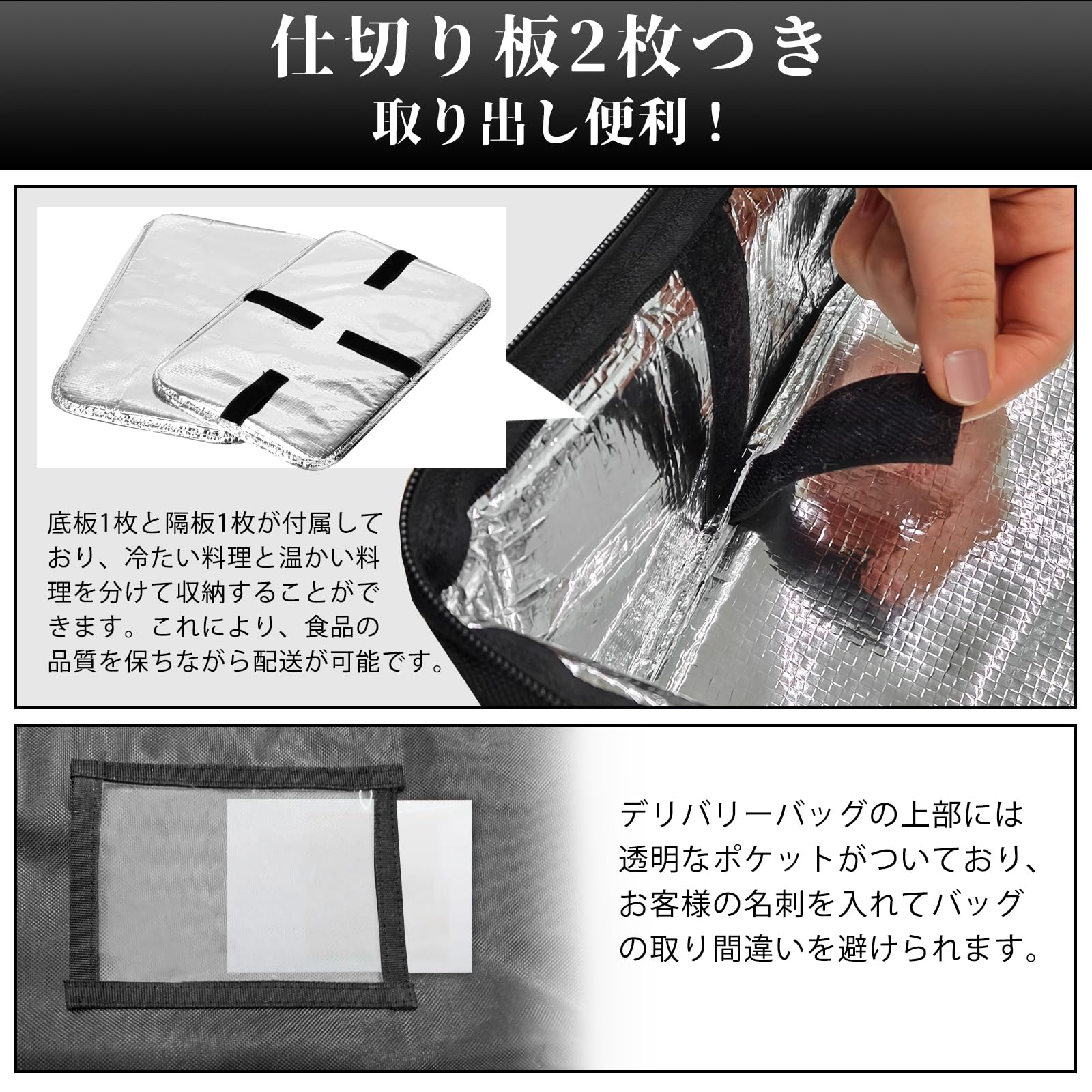 GNEGNI【拡張可能・保温保冷機能付き】デリバリーバック 配達バッグ 大型ピザ・お寿司配達用 35L大容量 自転車対応 カップホルダー&反射ストライプ付き 防水仕様 2枚仕切り板付き Uber Eats/出前対応 業務用フード配送バッグ