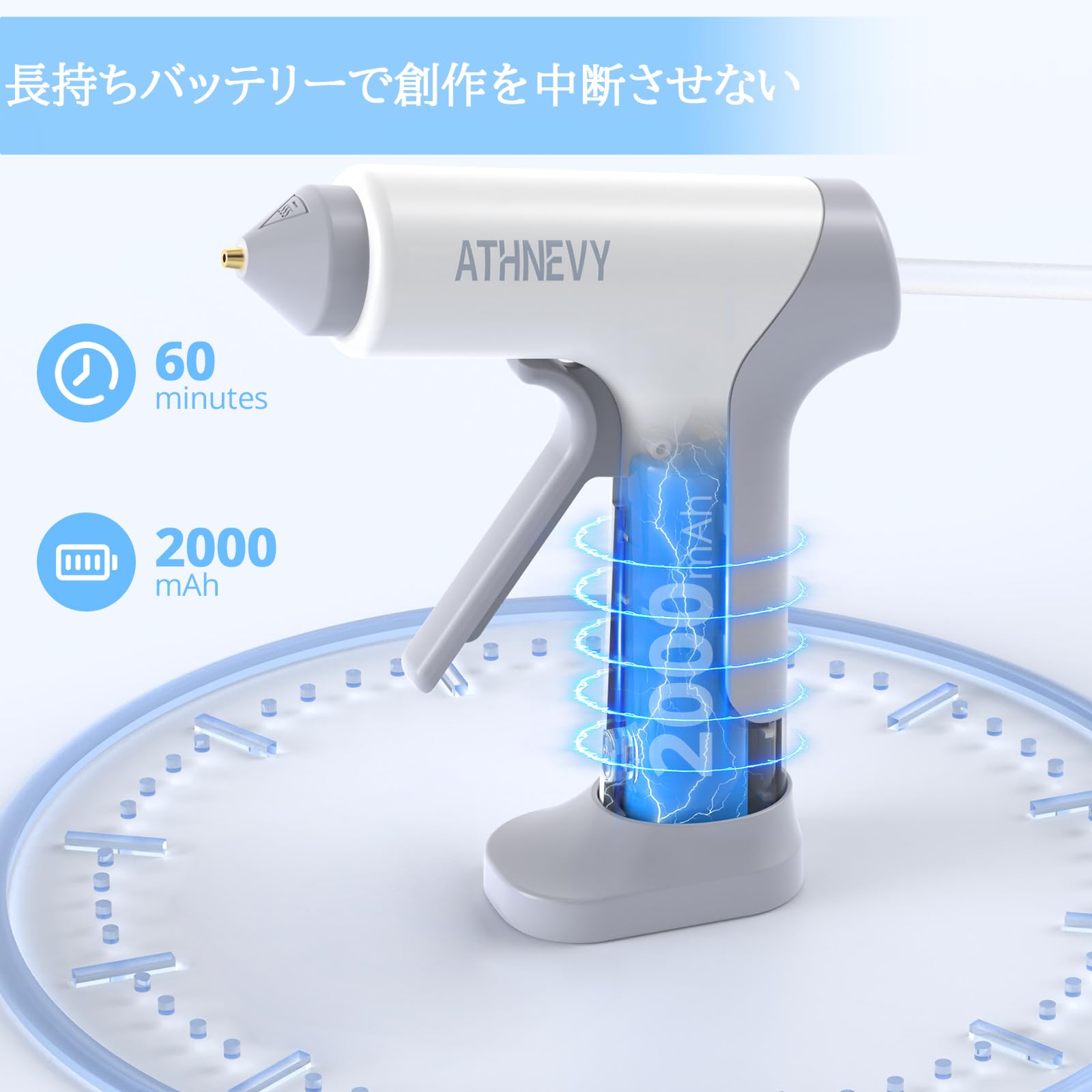 Litheli グルーガン コードレス 着脱式バッテリー 30s 急速加熱 Type C 充電式 スティック20本付き 最長作業時間 60分 強力粘着 DIY 補修 接合 手芸 木工 粘着工具