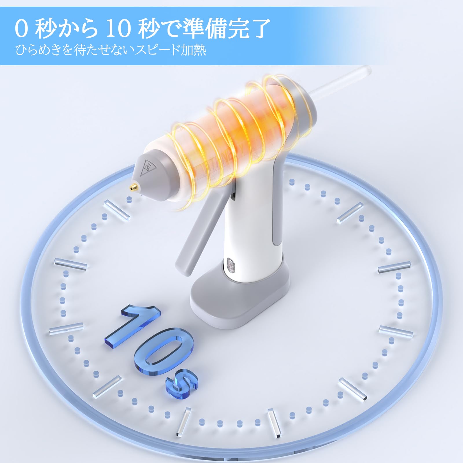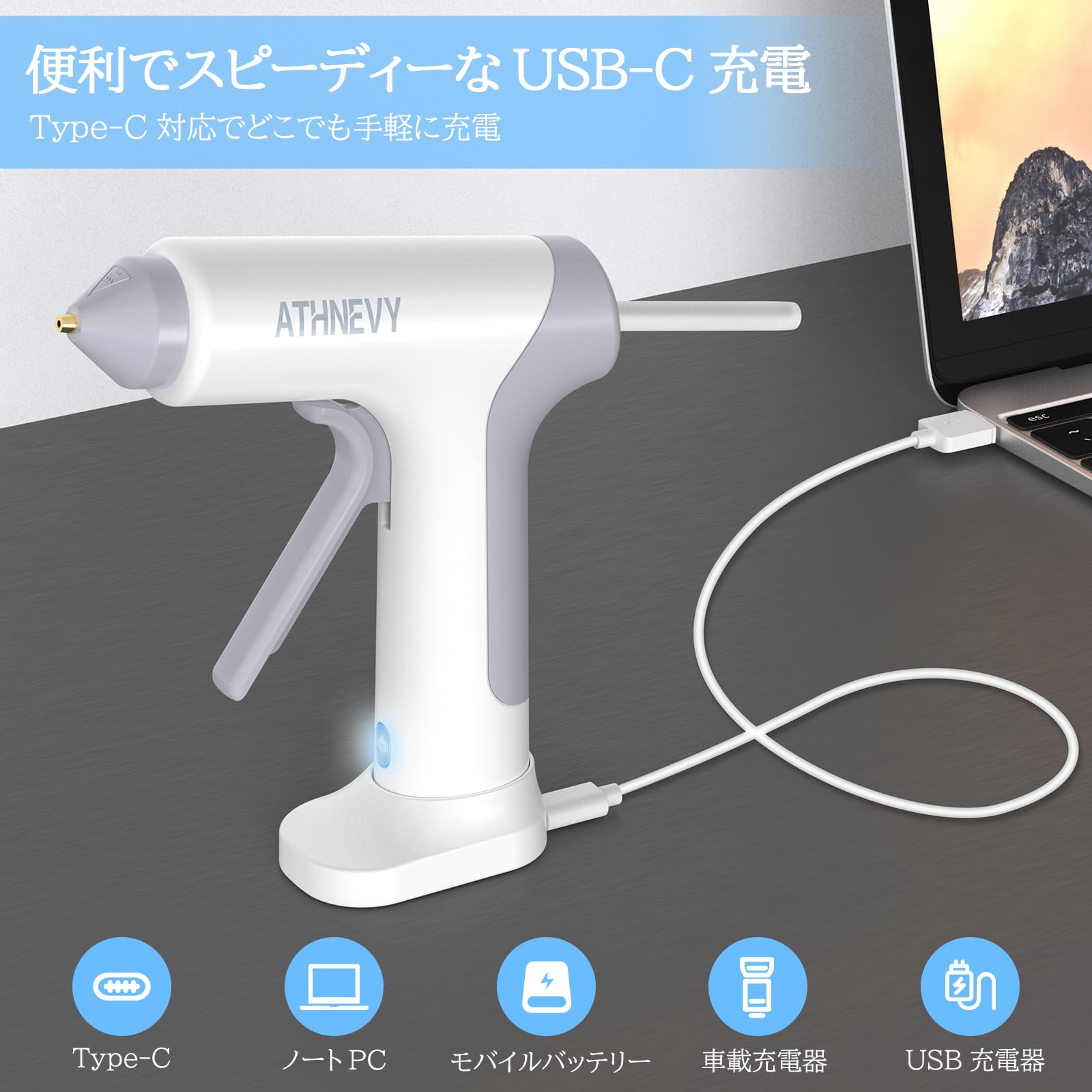 グルーガン コードレス 充電式 ボンドガン 10秒急速加熱 スティック30本付 2000mAh 4V 20W Type C スマートオフ 液漏れ防止 やけど防止 強力粘着 補修 DIY 手芸 木工 (ホワイト)