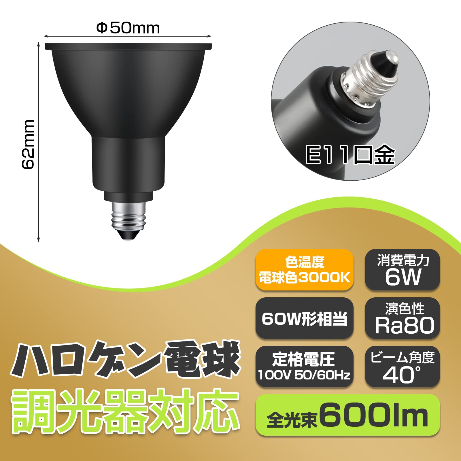 xydled 調光 E11 LED スポットライト LED電球 調光器対応 E11口金 6W 60w形相当 電球色3000K ハロゲン電球 600lm 省エネ PSE認証済 (電球色 ブラック 6個入り)