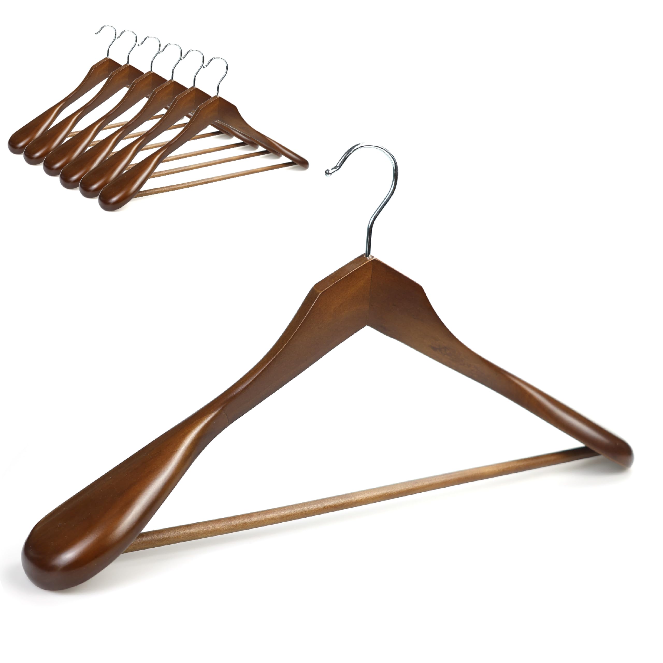 スーツハンガー 木製ハンガー 衣類ハンガー 洋服ハンガー 肩幅大きめ 滑り止め スーツ・ジャケット・コートホテル用 (茶褐色 6本組)