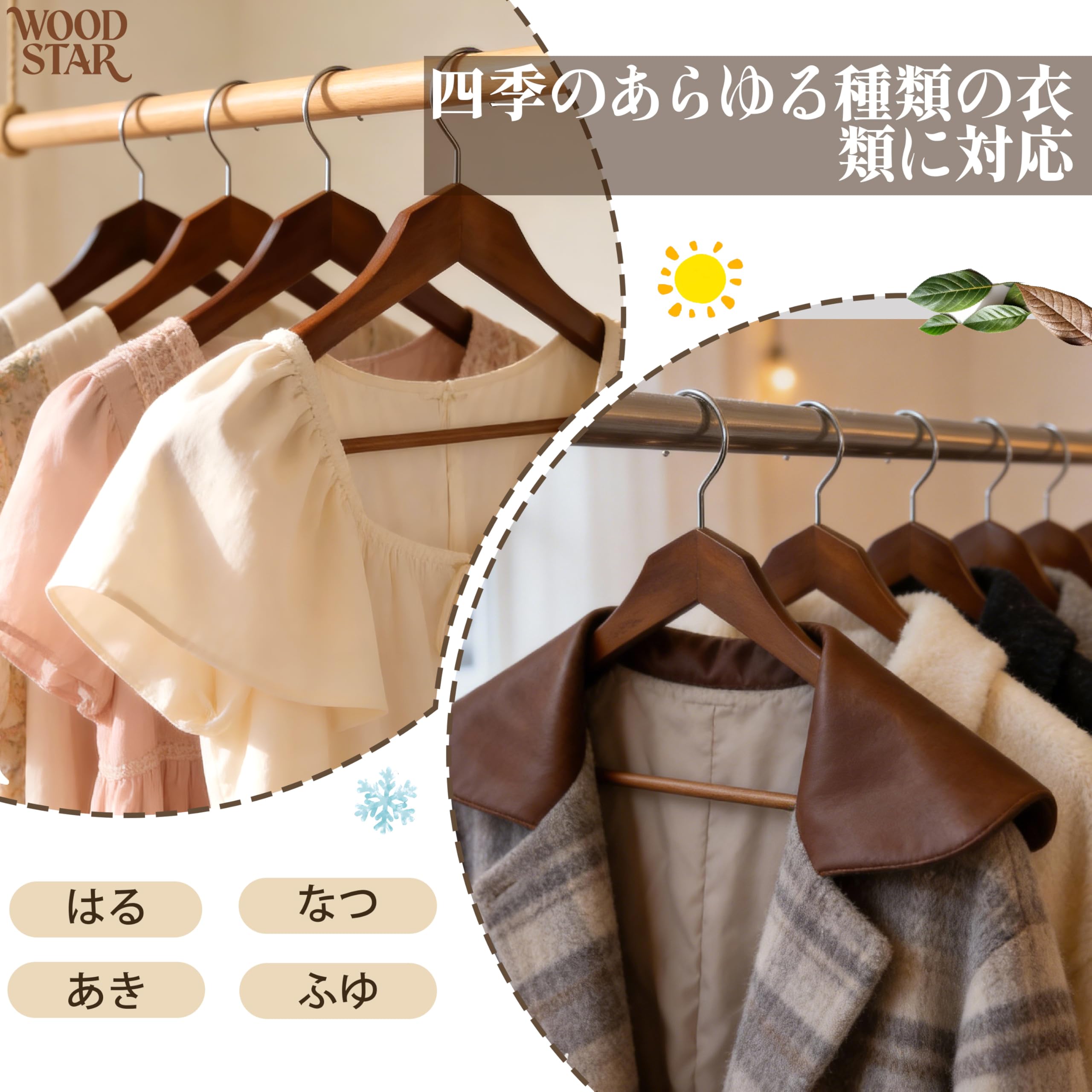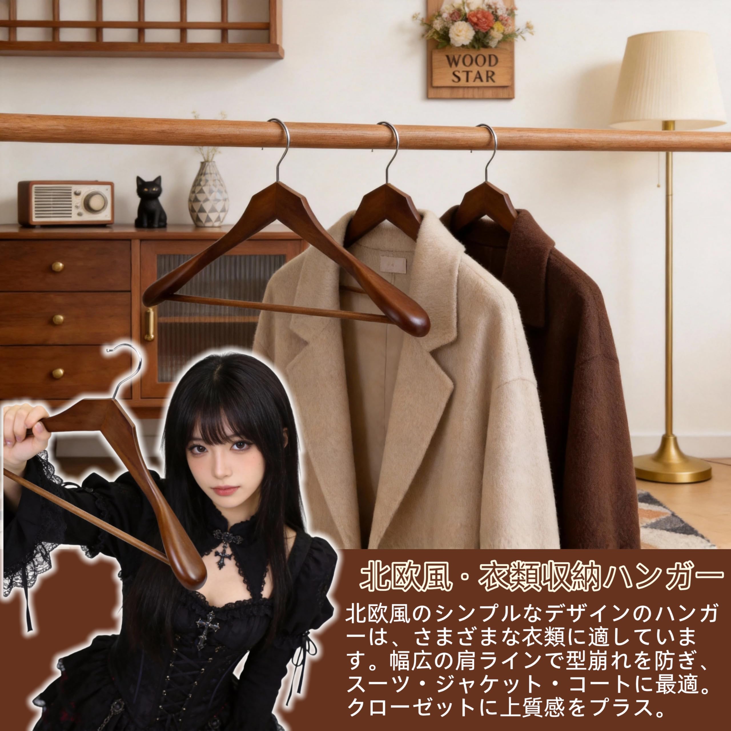 木製ハンガーセット 洋服 スーツ コート用ハンガー 手作 天然高級木 (胡桃色 10本)
