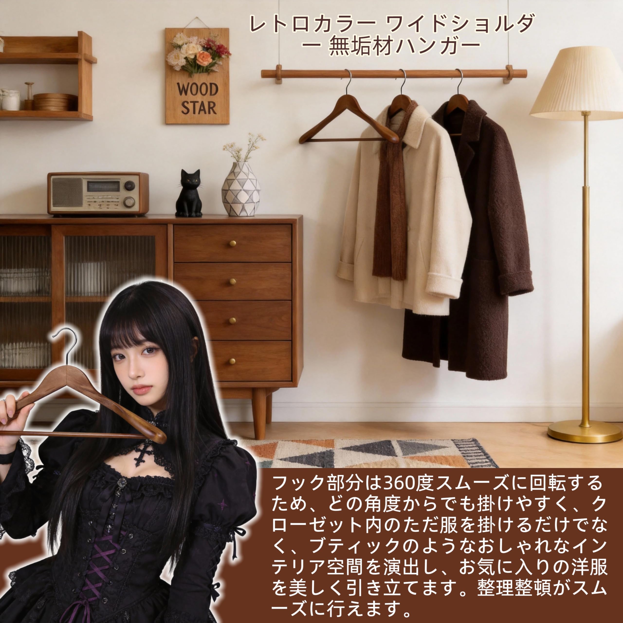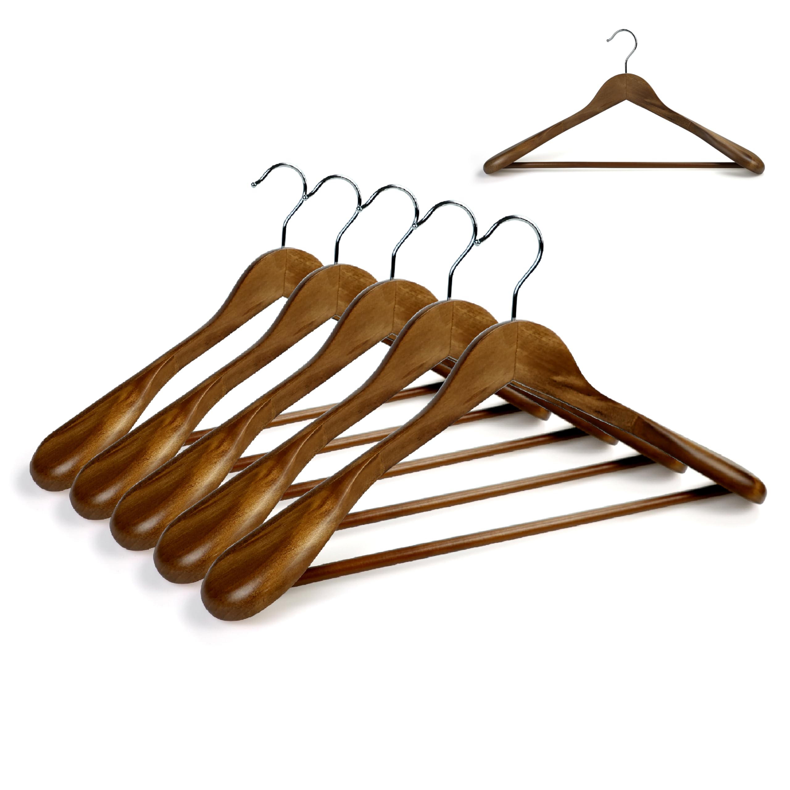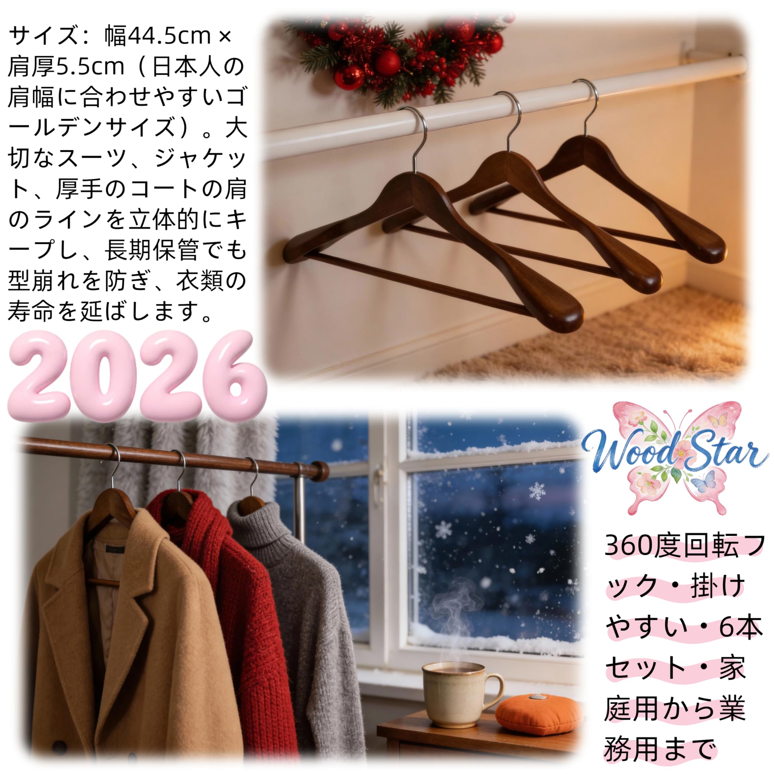 木製ハンガーセット 洋服 スーツ コート用ハンガー 手作 天然高級木 (胡桃色/6本)