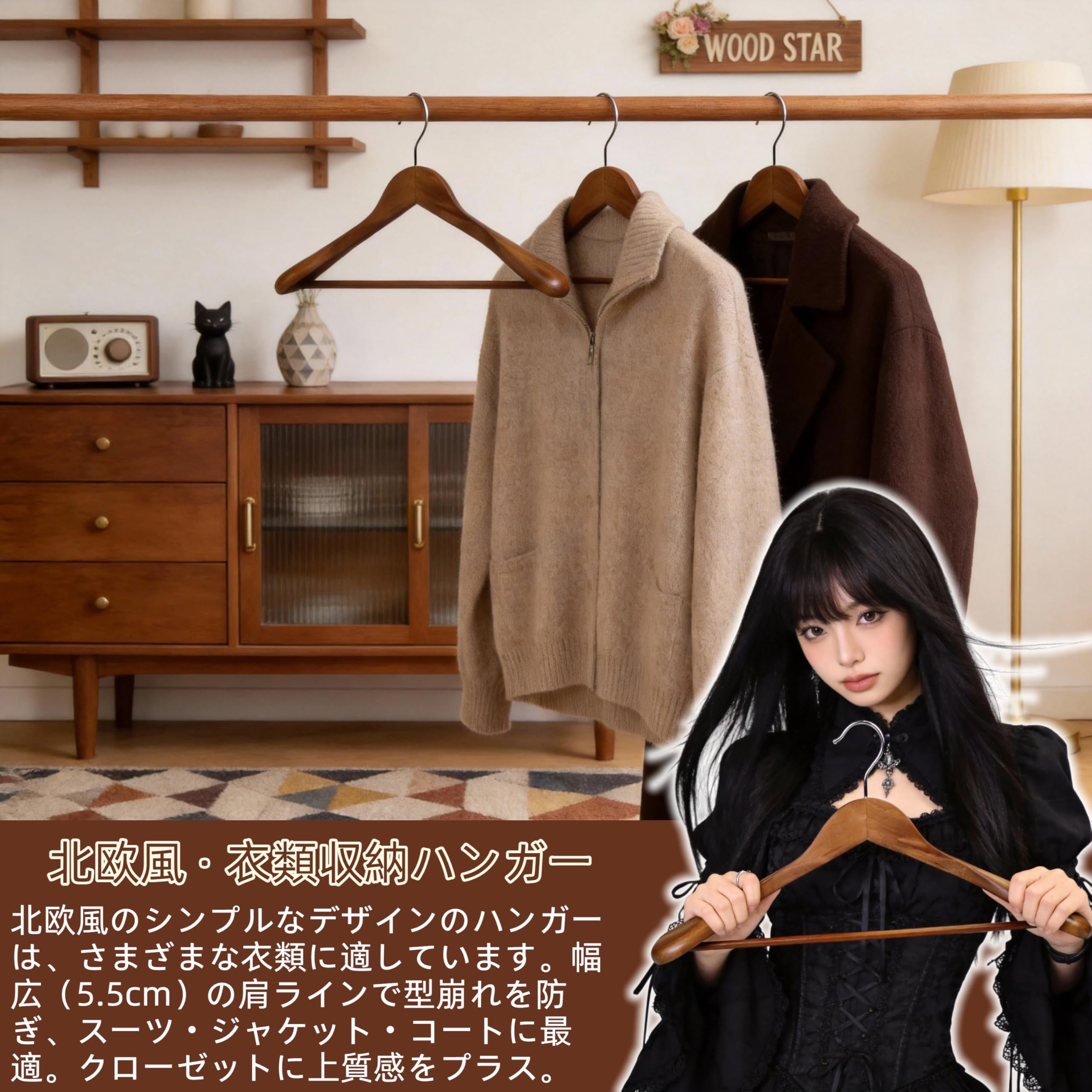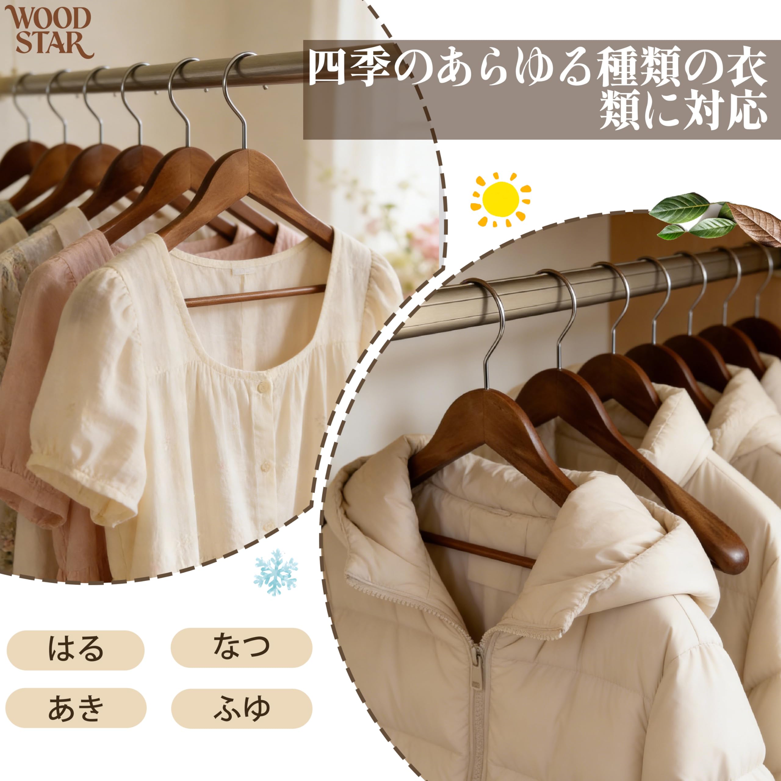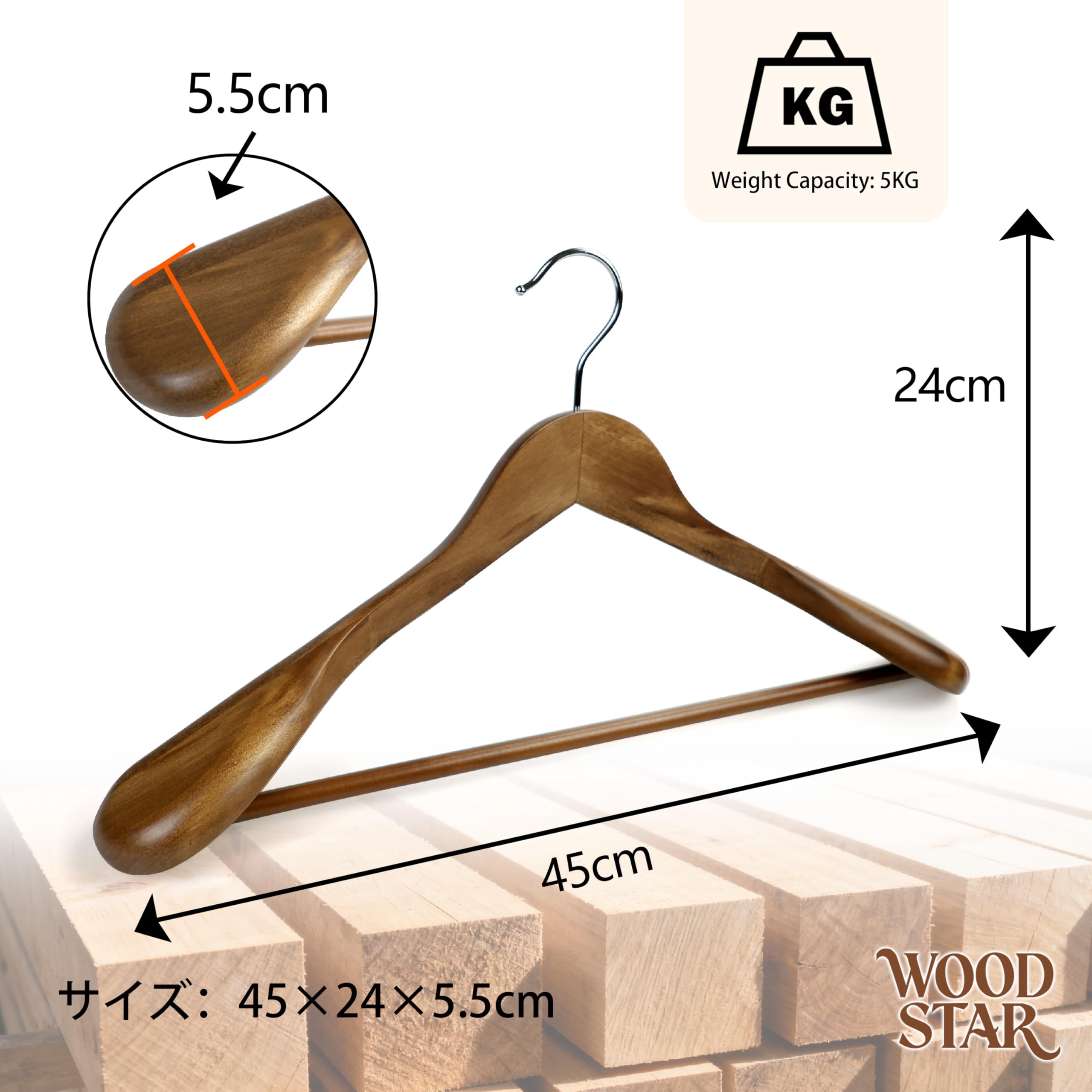 木製ハンガーセット 洋服 スーツ コート用ハンガー 手作 天然高級木 (ナチュラル/6本)