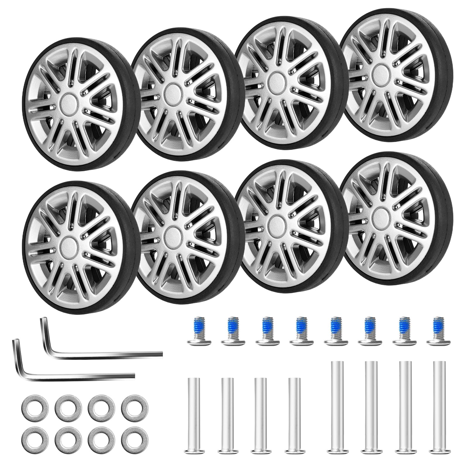ラゲッジスピナーホイール修理セット スーツケースタイヤ4個 2.2インチ回転ホイール 厚さ0.45インチ TPUラバーインラインホイール 2サイズ/55mm 車軸フルセット 修理ツール スピナー スーツケース トロリーバッグ ドローバー トラベルボックス