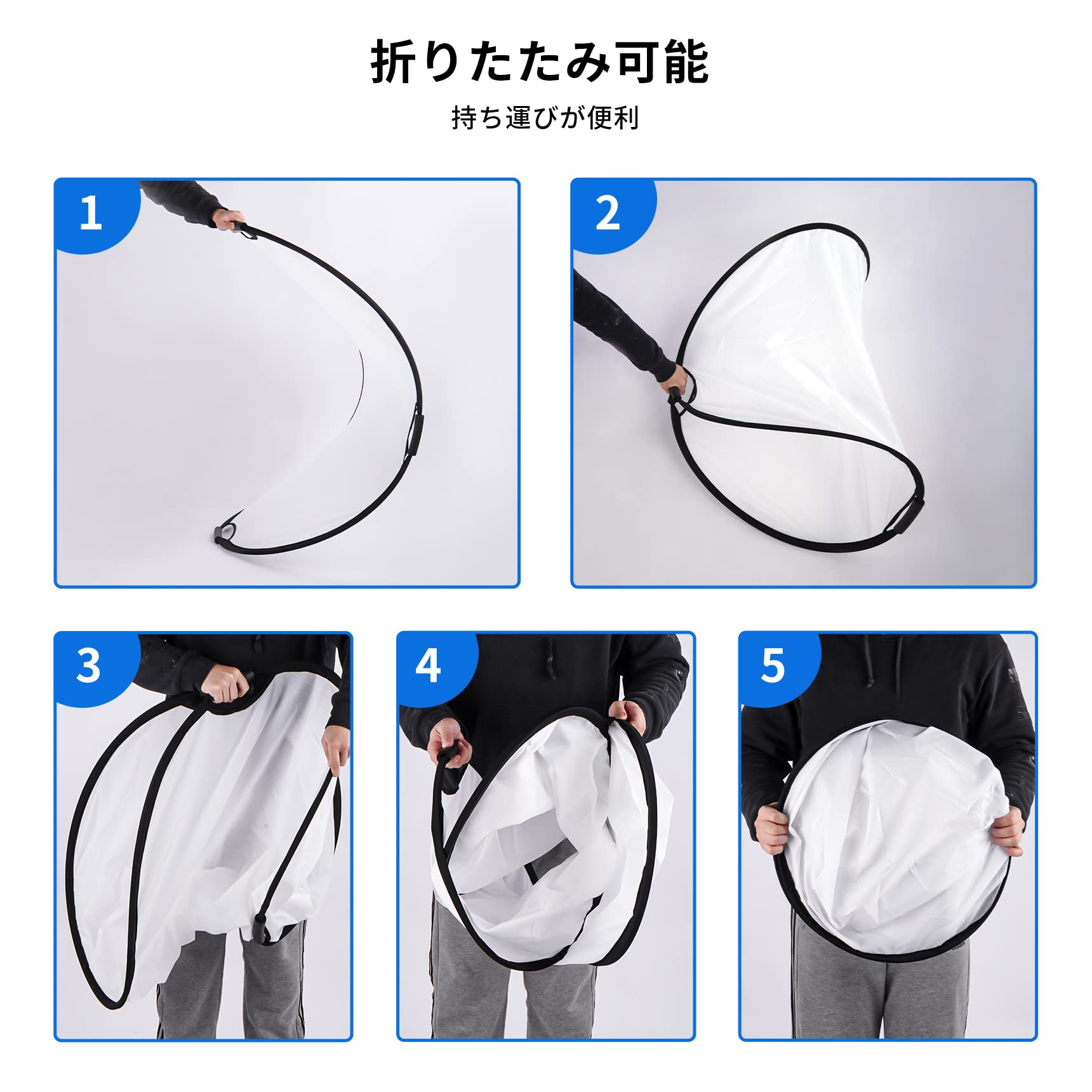 Selens 5-IN-1撮影用 楕円レフ板 100x150cm スポンジハンドル付き スタジオレフ板 折りたたみ可能 (1枚で5色対応-金/銀/白/黒/半透明)