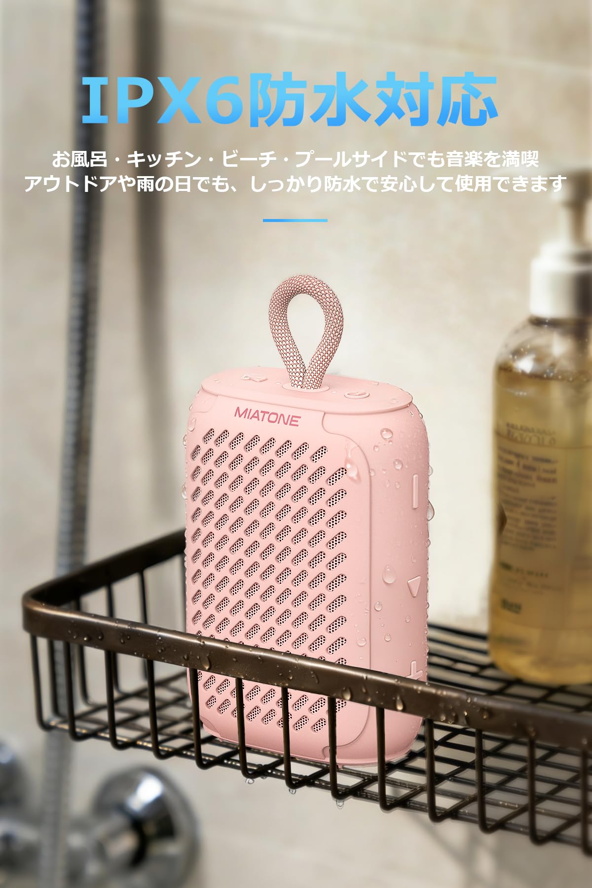ポータブル Bluetooth スピーカー, LEDライトリング付き, 防水, ワイヤレス, ブラック