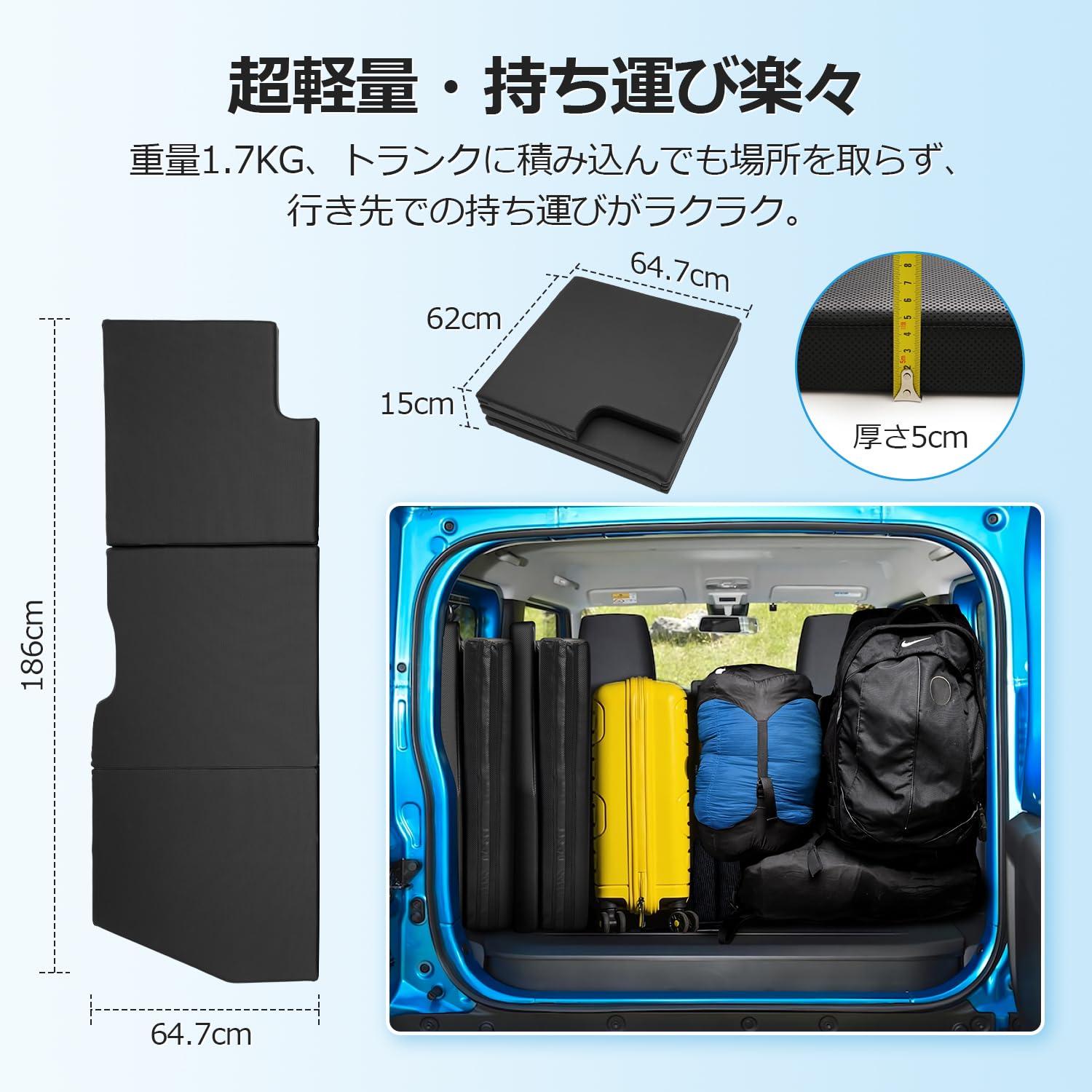 車中泊 マット デリカ D5 折り畳み式 マットレス 車用 ベッドキット高密度ウレタン 水洗い可 防汚 軽量 通気性 段差解消 快適睡眠 防災 DELICA D5 CV1W CV2W CV4W CV5W 2019年2月~ 助手席/運転席併用 1枚入り