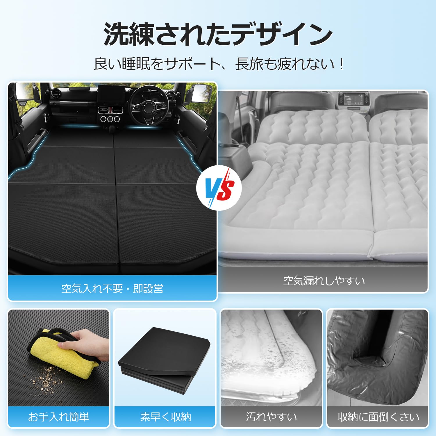 YOUTALLY 2022 車中泊マット 車載 エアーベッド 後部座席 独立サポートエアクッション 電動ポンプ付き ポータブル 車用ベッド MPV SUV汎用 車内泊 キャンプ用品 快適空間 仮眠 旅行用 屋外用 (フロッキーブラック)