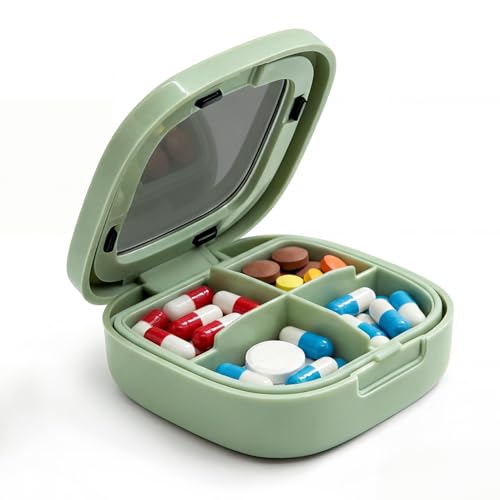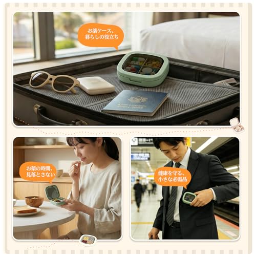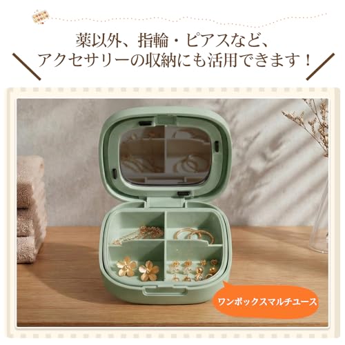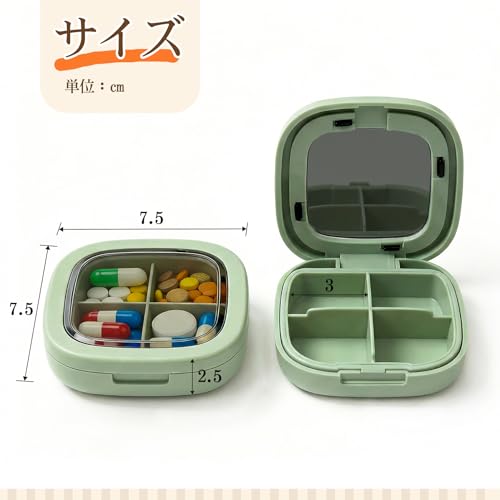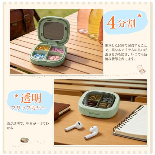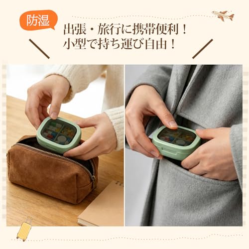 小型ピルケース ケース 小分け 4分割 携帯用 出張用 旅行用 防湿 密閉 サプリメントケース サプリケース 小分け 薬入れ 薬収納 薬入れケース コンパクト 持ち運び便利 ポータブル 小型ジュエリーケース(緑)
