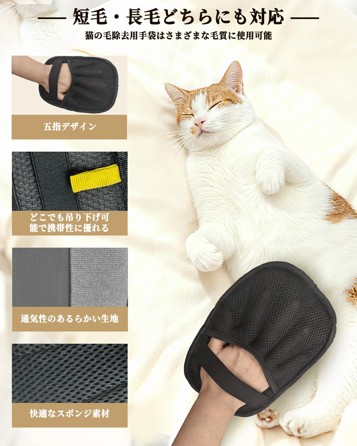 ATPEAM 猫の毛除去手袋 個セット 猫の毛取りモフグローブ 猫 毛取りペット用静電気除去手袋 再利用可能な5本指のデザインは、ソファ、カーペット、猫の毛の掃除に適しています 猫と犬用のペットグルーミンググローブ