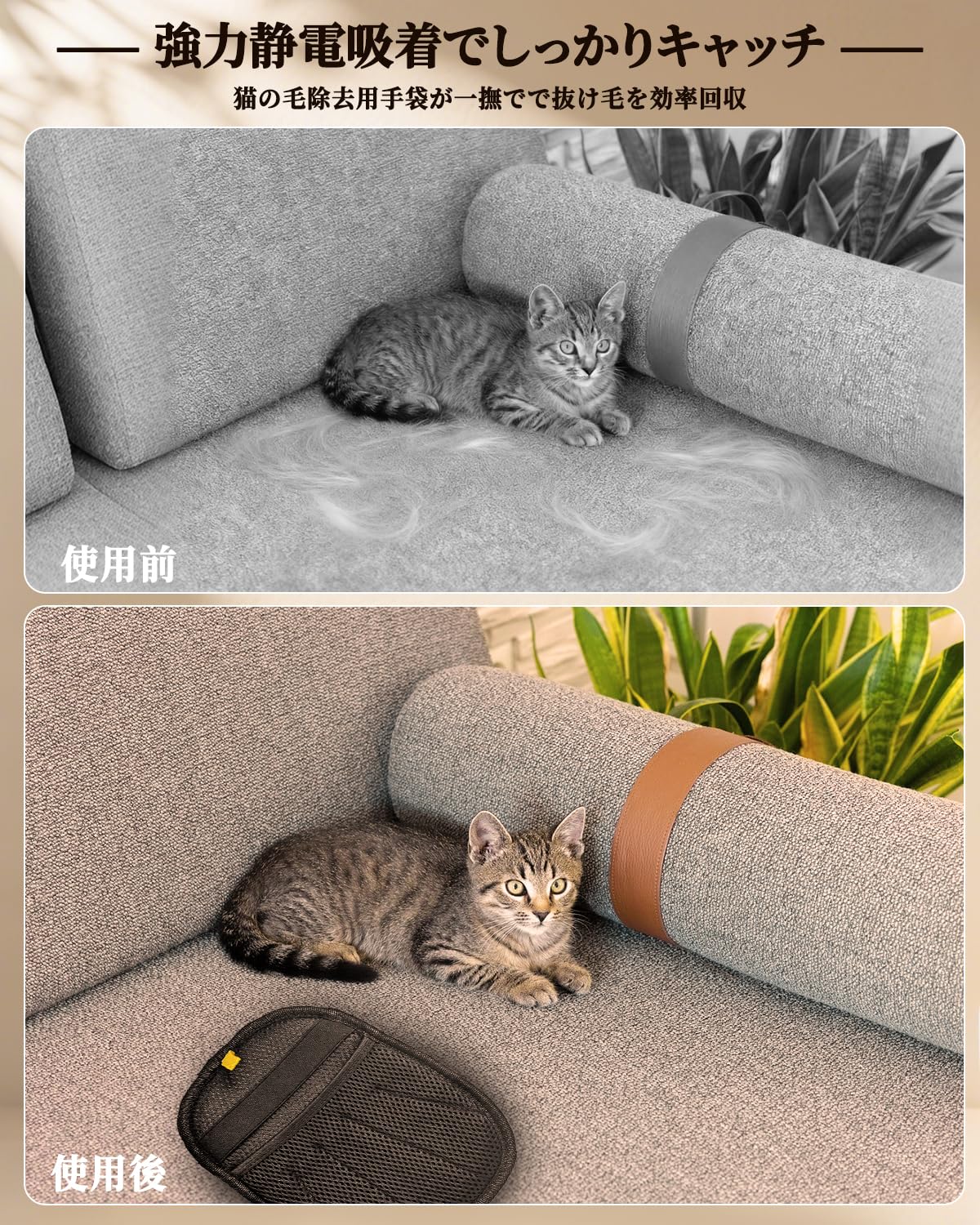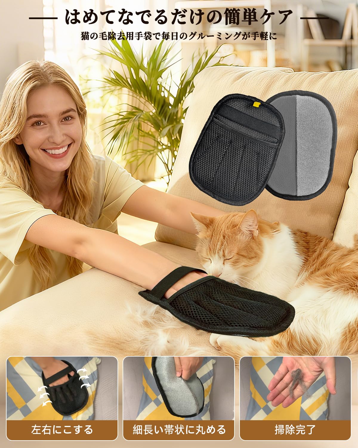 ATPEAM 猫の毛除去手袋 2個セット 猫の毛取りモフグローブ 猫 毛取りペット用静電気除去手袋 繰り返し使えて、ソファ、カーペット、猫の毛の掃除に最適です 猫と犬用のペットグルーミンググローブ