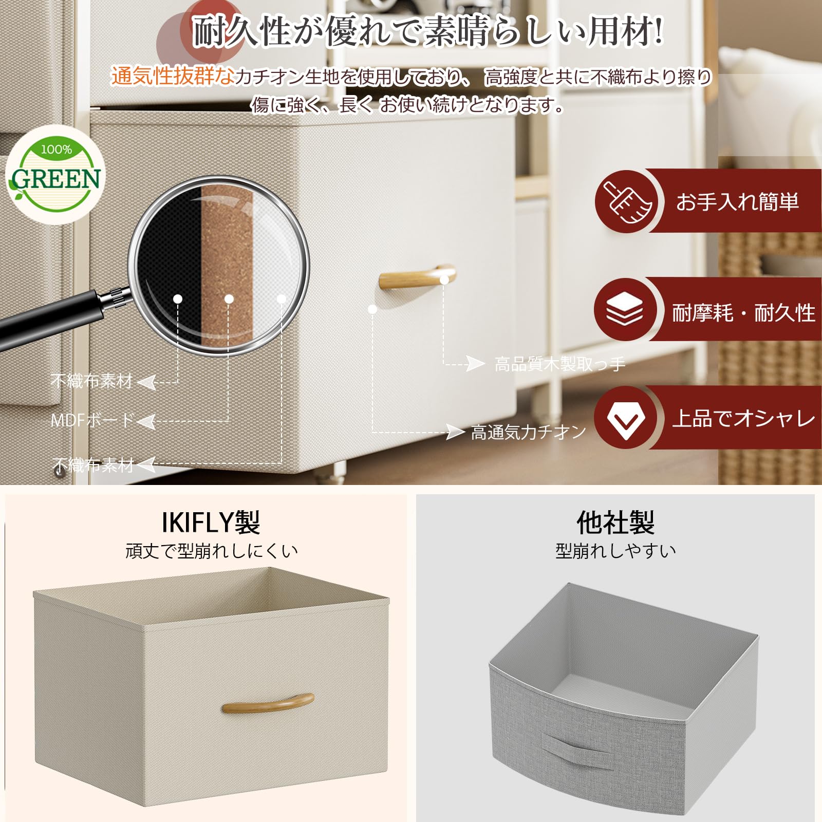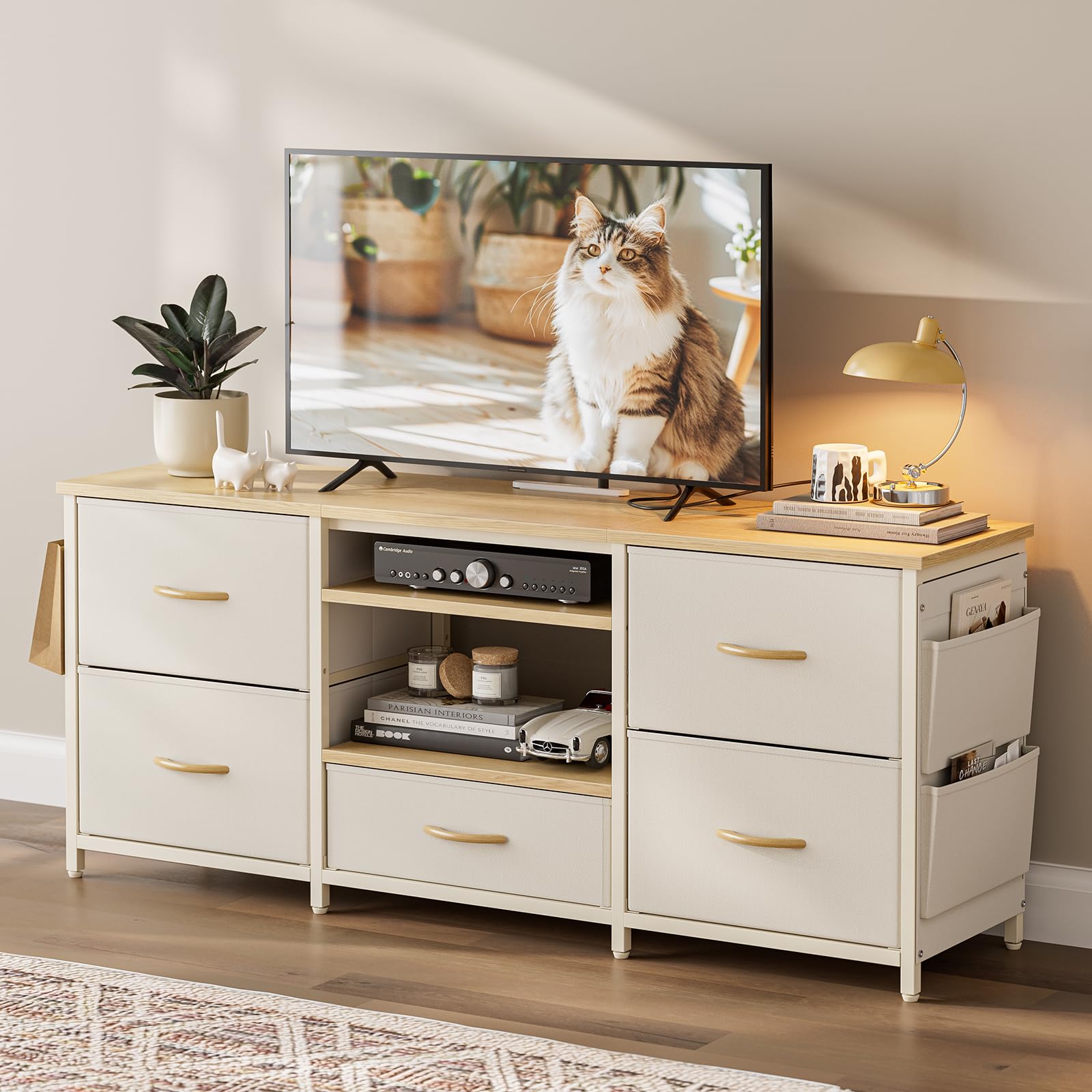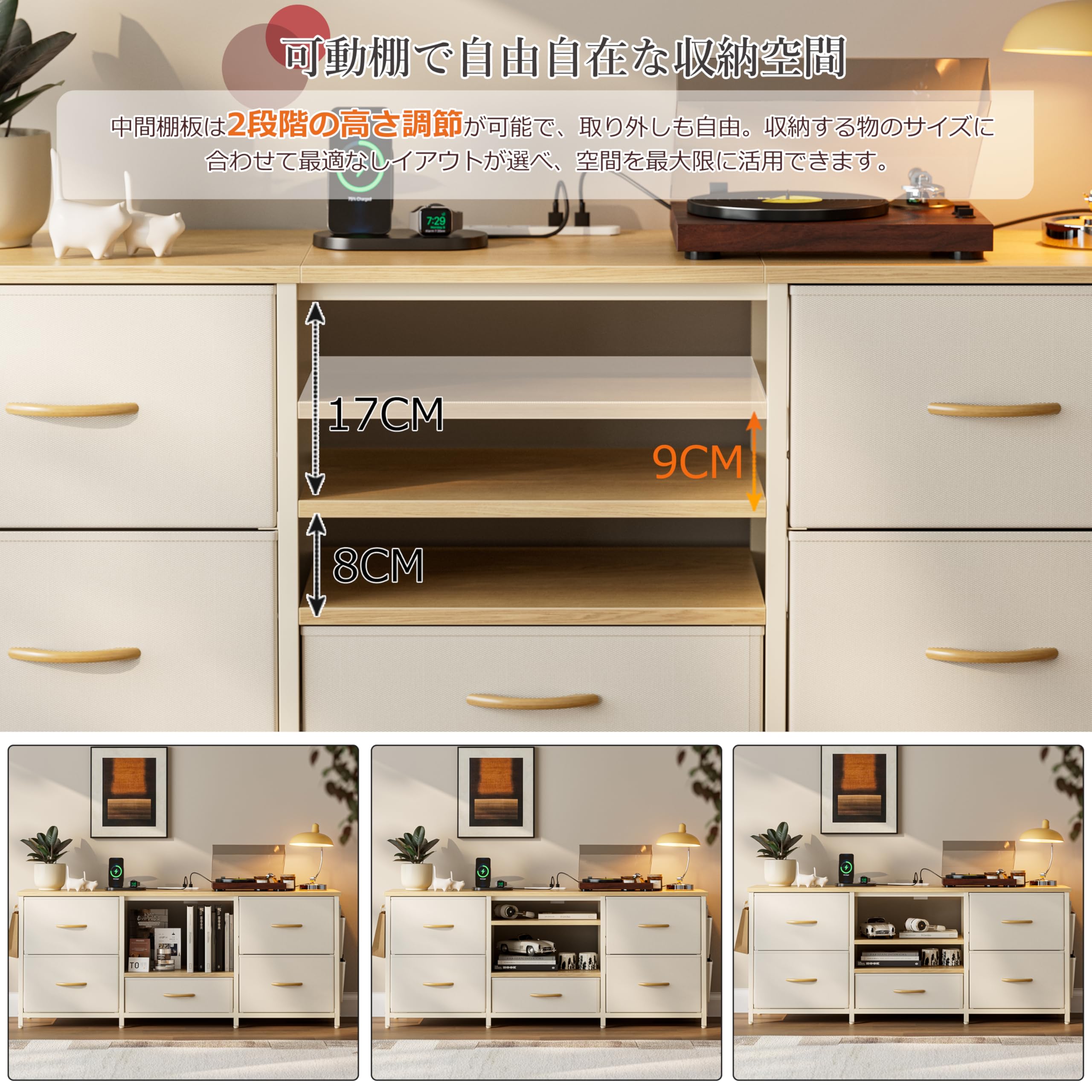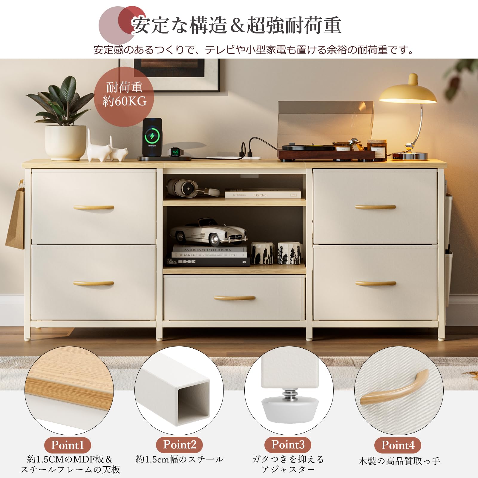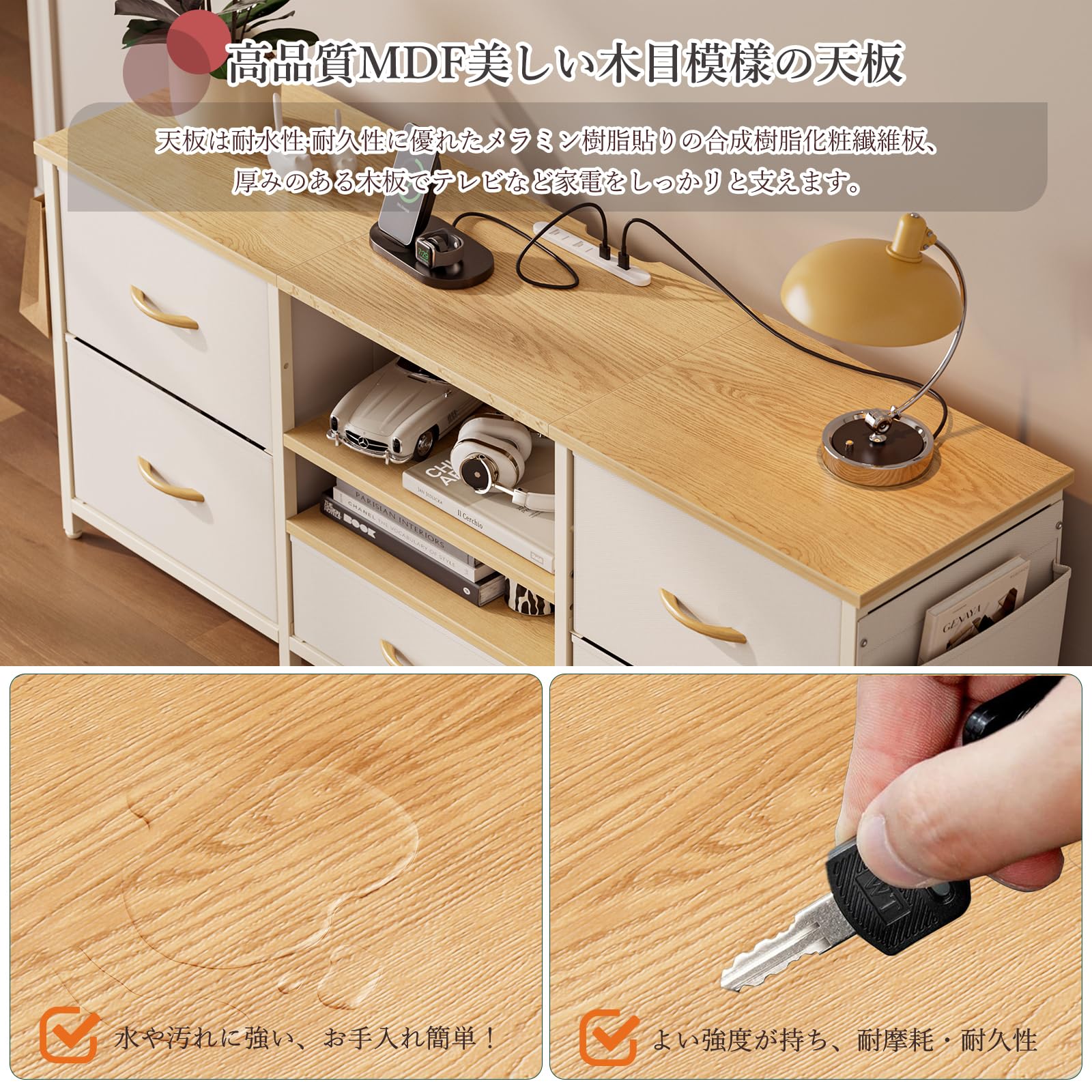 IKIFLY 収納チェストロータイプ テレビ台 テレビボード 引き出し ローボード テレビラックワイドチェスト大容量収納 42 32インチ 50型まで対応 省スペース 引き出し 収納 北欧 おしゃれ ウォールナット幅98×奥行29×高さ56cm (ベージュ)